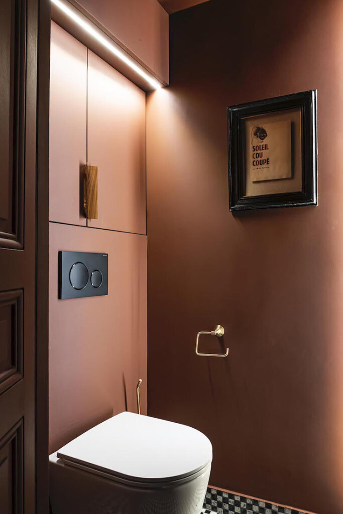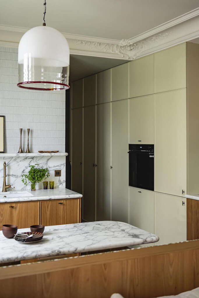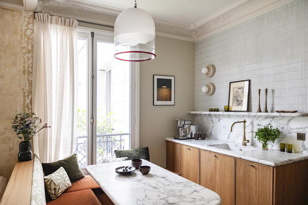 Parisian designers will never cease to amaze me with their ability to create so much personality and storage capabilities in such small spaces. This 60m2 apartment in Paris’ 16th arrondissement was renovated by Caroline Andréoni and is packed with all the amenities and storage options whilst creating separation between living and kitchen/dining spaces (that banquette is brilliant!). The historical and presumably original details are such a wonderful juxtaposition to the modern additions too. This is perfection! Photos: Julien Pepy