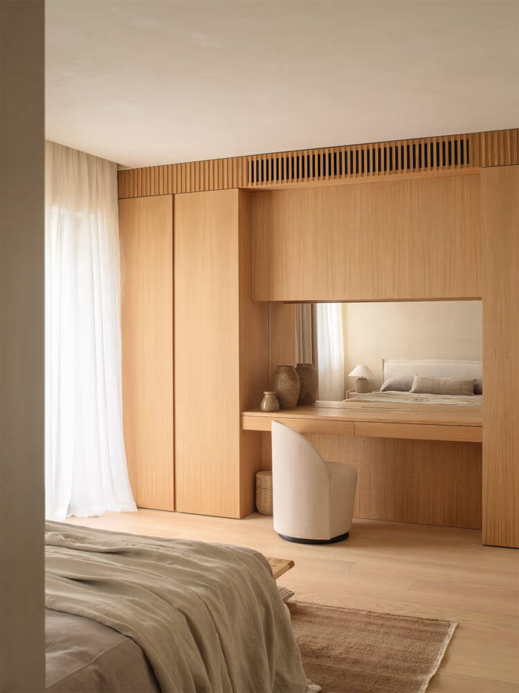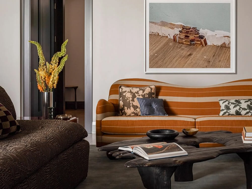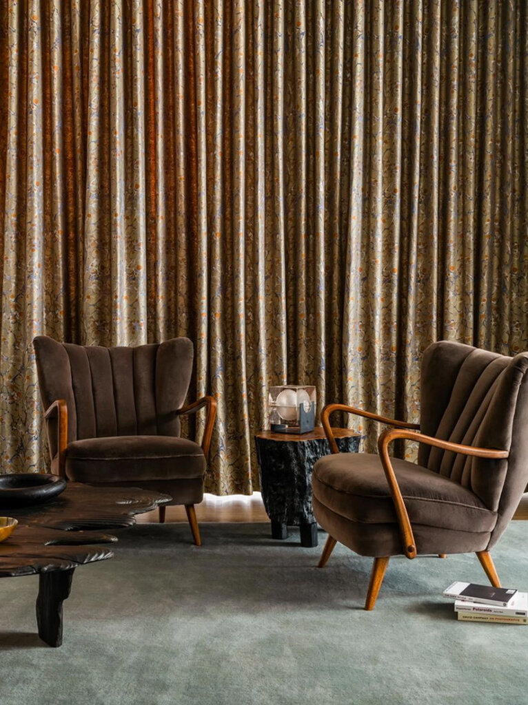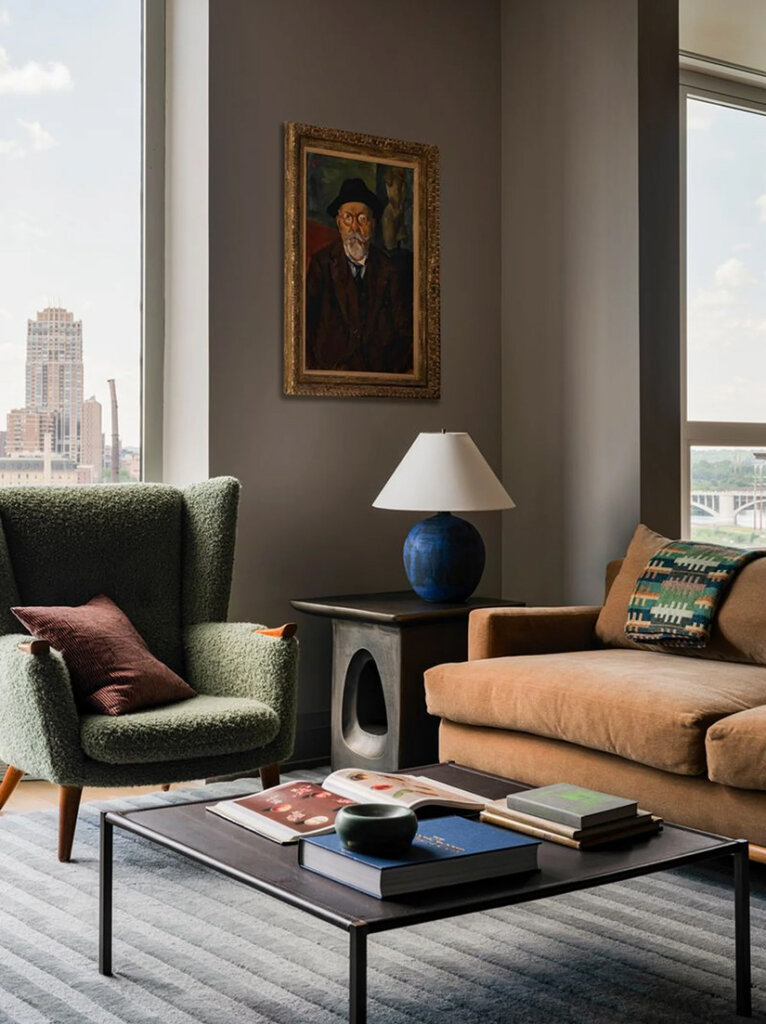 This apartment by Prospect Refuge, is set within a 42-storey tower on the Mississippi River and brings together softness, stillness, and material harmony. Once a raw shell, it has been reborn into a warm, sculptural home where gentle curves meet mid-century coolness. Using a palette of walnut, marble, mohair and plaster, hard edges were softened and a calmness introduced. You’d never know you were living in the sky. Photos: Taylor Hall O’Brien; Styling: Tessa Watson.