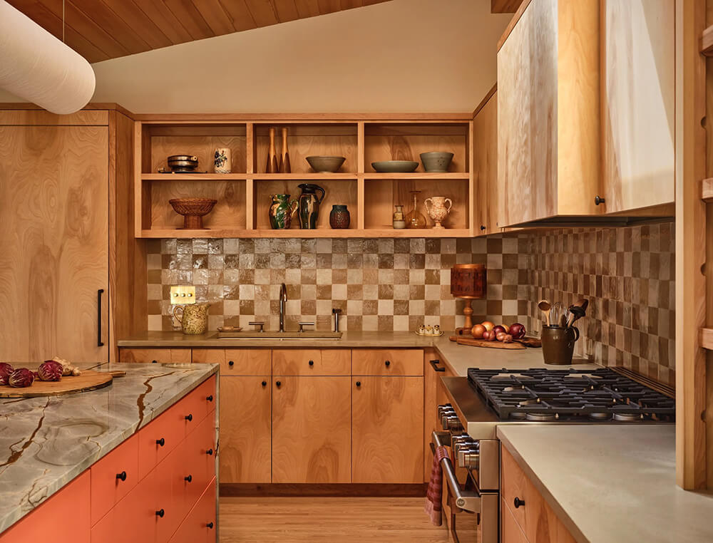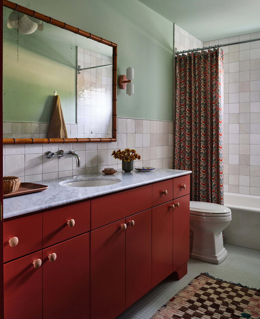 I love that designer Anne McDonald embraced and enhanced the groovy mid century elements of this home and added some beautiful deep jewel tones as well as some funky patterns (that kitchen backsplash is the bees knees). It’s now more current and totally liveable and practical. Photos: Michael Clifford; Styling: Yedda Morrison.