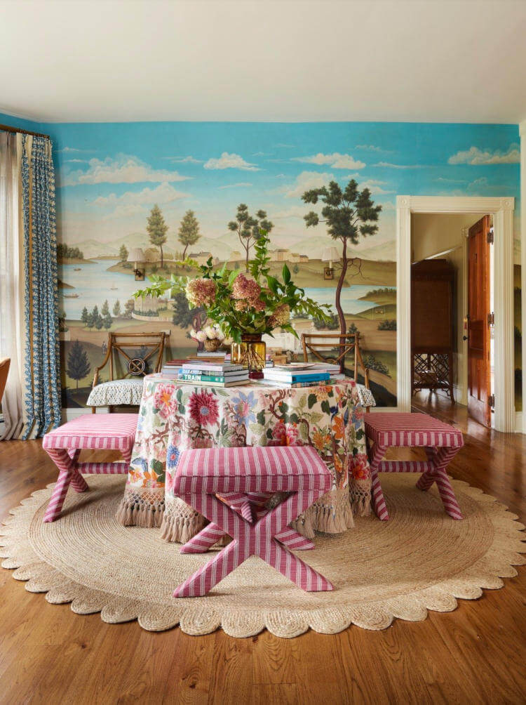 This handsome Victorian villa on a corner plot in Saratoga Springs, New York has been joyfully brought back to life by Sarah Brown Interiors. Once a rather bland six-bedroom B&B, it’s now a lively holiday home for a young, horse-loving family who enjoy entertaining. Bold pattern, British contemporary craft and bespoke artworks layer each room with personality, from sociable sitting and drinks rooms to calmer, whimsical bedrooms upstairs. The result is relaxed, characterful and made for modern family life.
