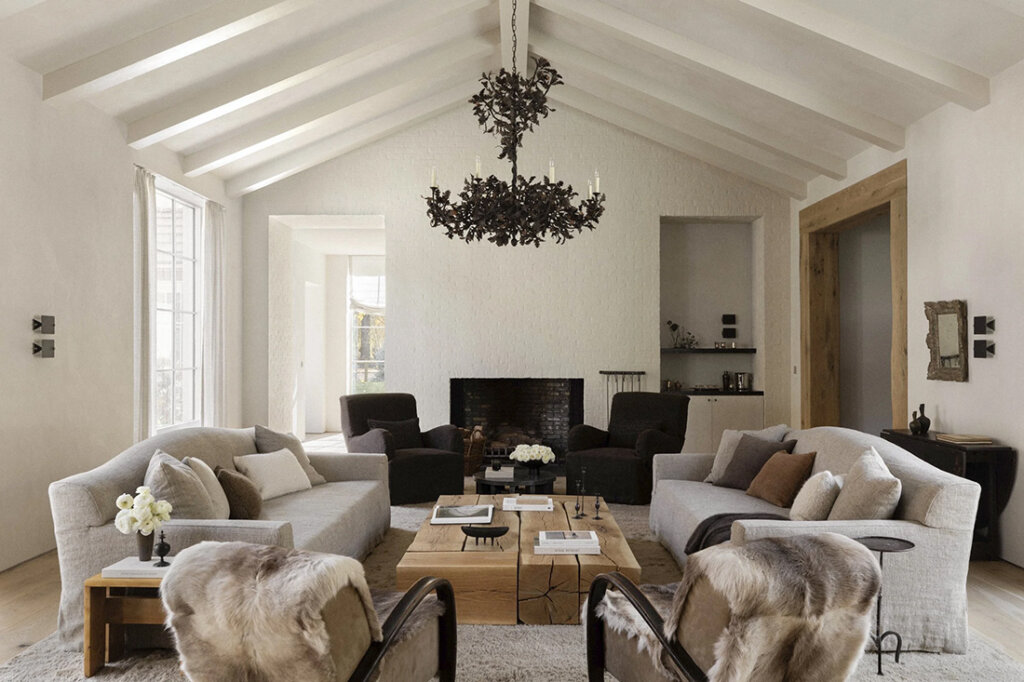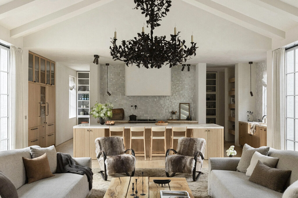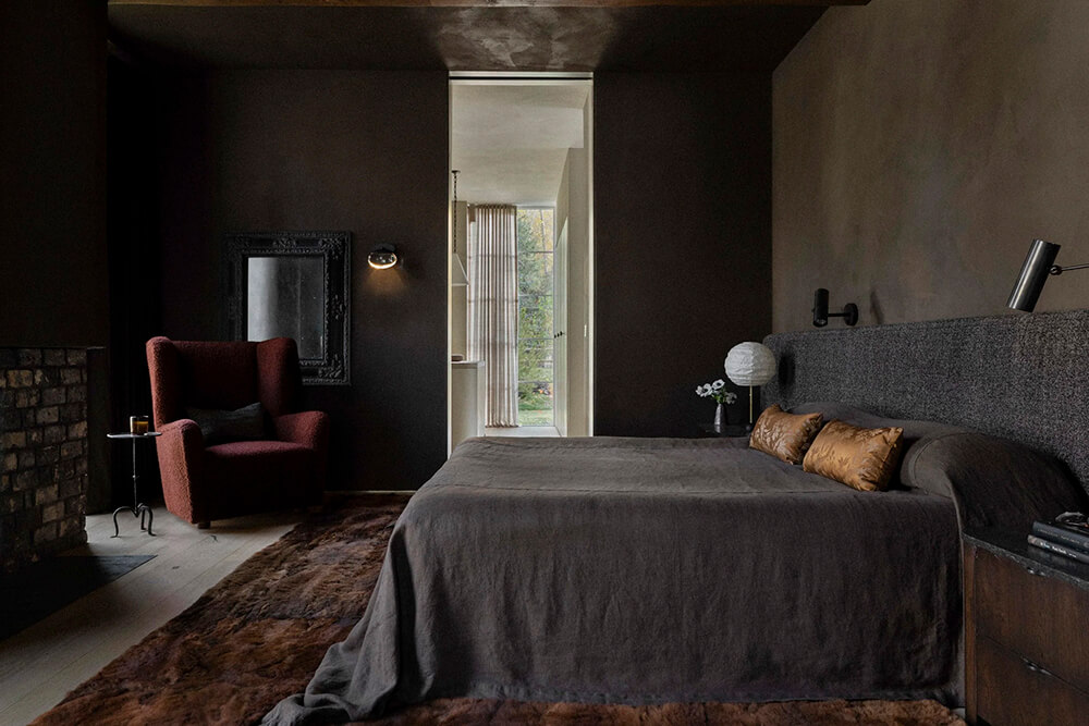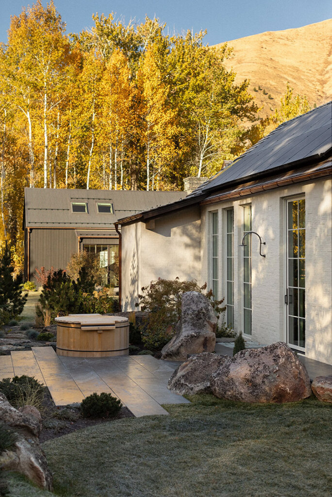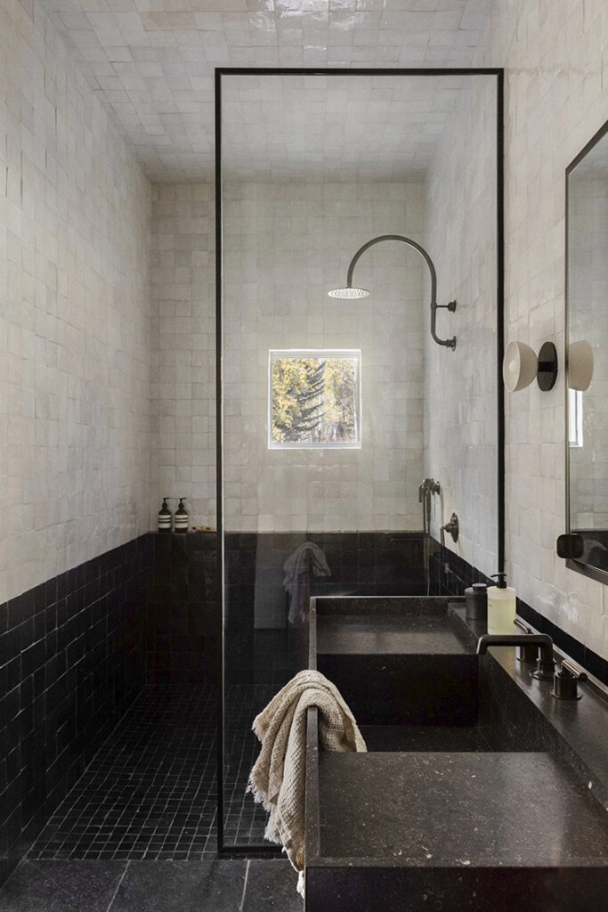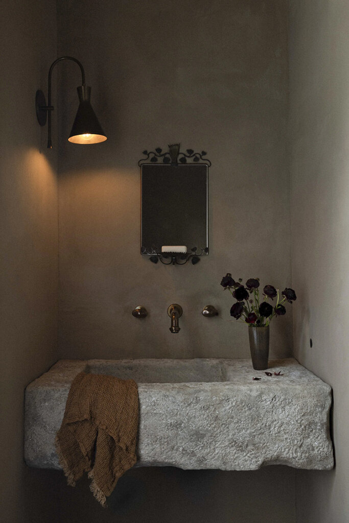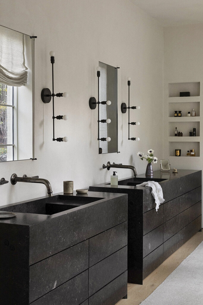 This Sun Valley, Idaho mountain home isn’t your typical ‘mountain modern chalet’ style. It is restrained, monastic, very much subdued in colour palette and architectural details, and has a luxe, Belgian vibe that embraces light so beautifully. As much as I love homes with history and old world architecture and doses of colour, this would 100% be what I would want in my second home. That primary bedroom is GOALS. I love a really dark and textural bedroom sooooo much. Designed by Studio MTN; Architect: Brunelle Architects; Photos: Aimée Mazzenga. (Stay tuned – the guest house coming up next!)