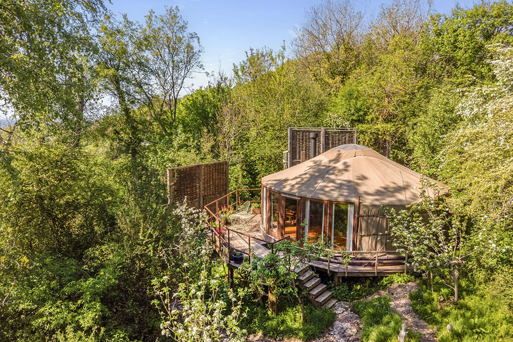 A resolutely unique collection of spaces, quite unlike anything in the area, Mall House is a remarkable home occupying a spectacular elevated site on the outskirts of Bath. Each of its buildings has a distinct charm and character, from an enchanting stone-built cottage to peaceful wood cabins and inviting timber-framed yurts. Set on a sloping site, the surrounding grounds stretch to almost three acres and are formed of ancient woodland, productive vegetable gardens, and swathes of lawn set against breathtaking panoramic views. Despite its overwhelming tranquillity, Bath’s city centre is easily reached in around 15 minutes by car, or by bicycle in around 40 minutes.