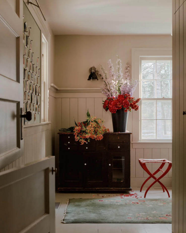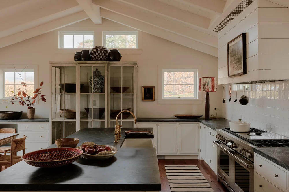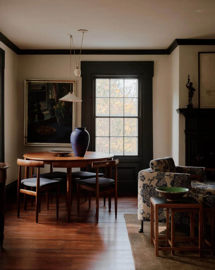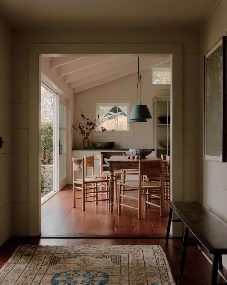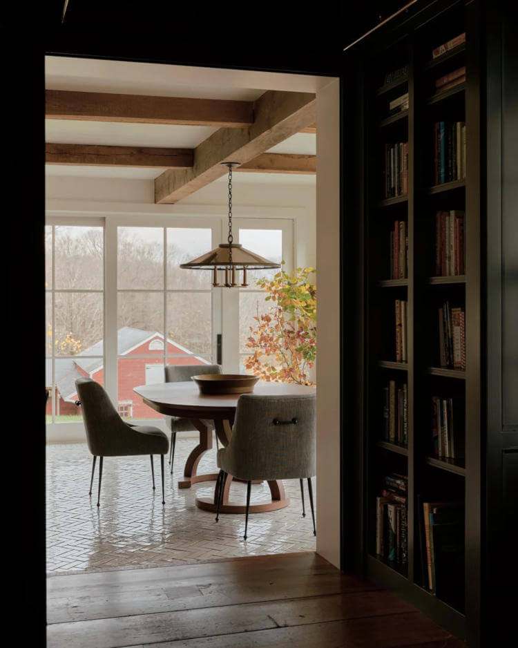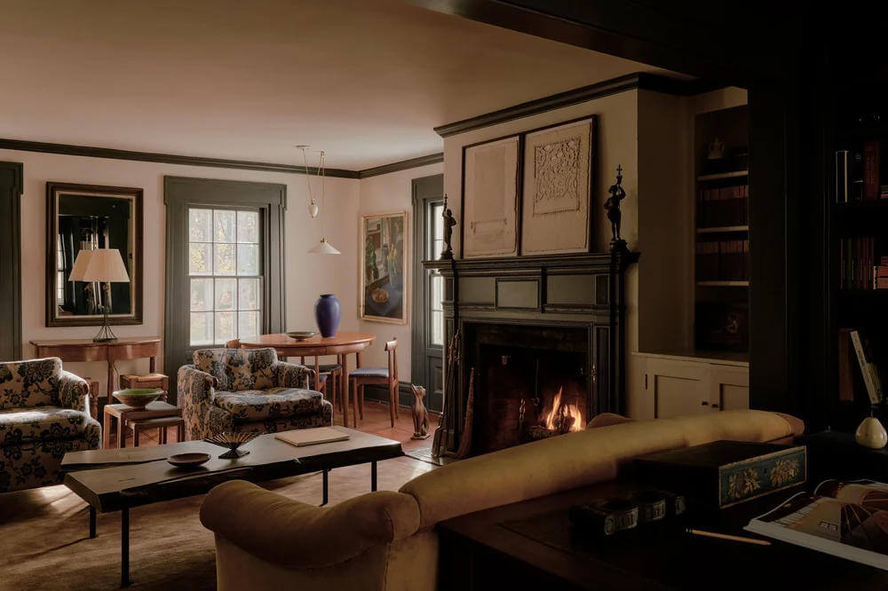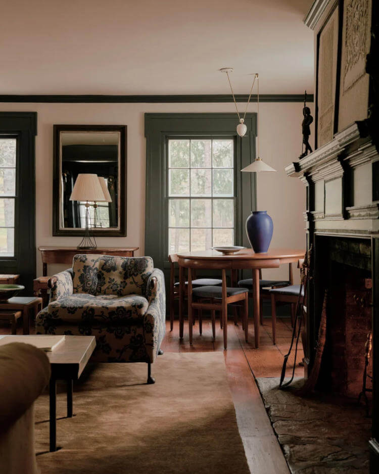 Hudson Valley Farm by Chused & Co. sees a centuries-old Millbrook farmhouse gently refreshed without losing its soul. Working alongside architect Doug Larson, the team embraced the home’s quirks … sloping floors, antique glass, timeworn moldings … while sharpening the layout and adding new life. Inspired by the estate’s literary past and pastoral setting, moody colours, rich textures and collected objects create a warm, layered retreat. Hidden details and quiet surprises make the house feel intimate, playful and perfectly lived-in for modern family weekends.
