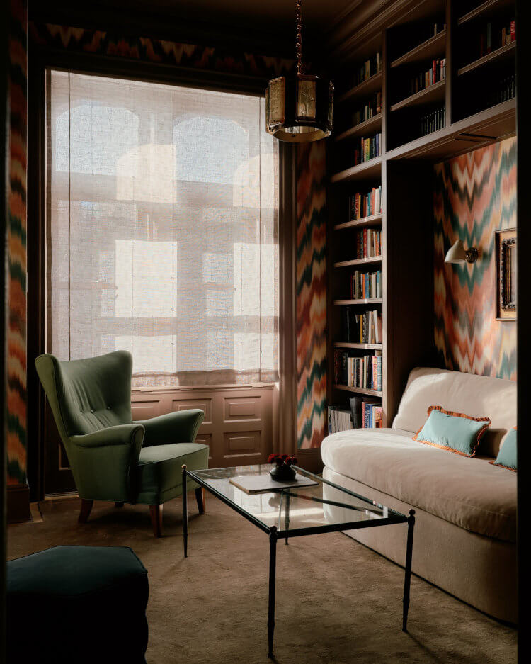 This 1895 English Gothic townhouse was reworked by Chused & Co into a polished yet practical home for a family of four, equally ready for weekday life and lively entertaining. A clever dining setup expands to seat sixteen, while the living room shifts easily from cosy hangout to elegant hosting zone. Hidden gems were revealed too, including a restored mosaic floor and reclaimed European parquet upstairs, adding texture, warmth, and a sense of history throughout.