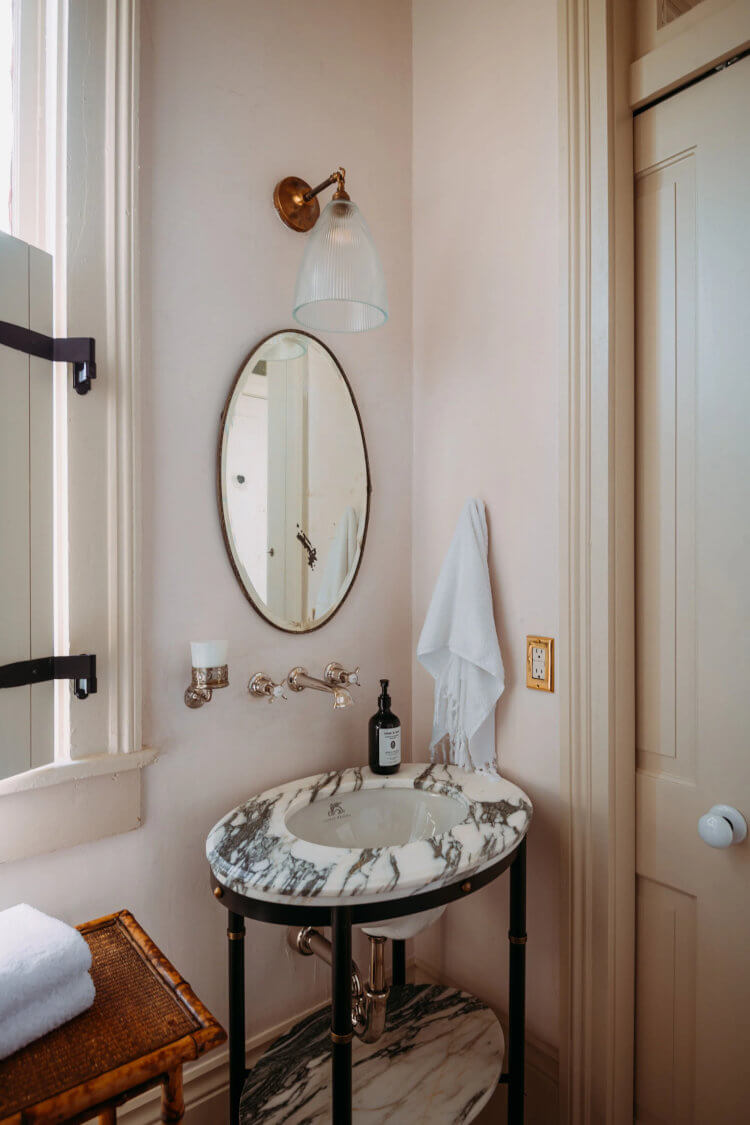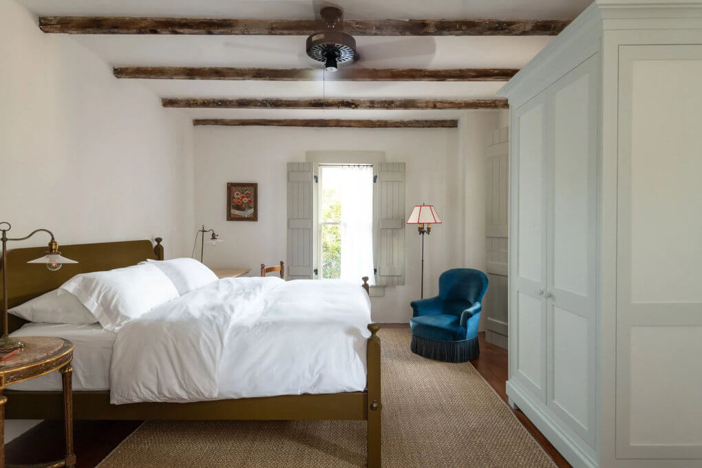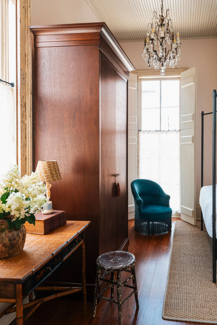 Chartres 1883, reimagined by Logan Killen Interiors and Design, turns a former New Orleans feed store and carriage house into a warm, character-filled retreat. Plaster walls, handmade finishes, beadboard ceilings and concrete floors keep things honest, while rich, saturated colours are filtered through lace curtains. Built-ins were skipped for antique-style storage, giving the place a relaxed, lived-in feel … perfect for long dinners, lazy pool days, and easy, memorable stays.