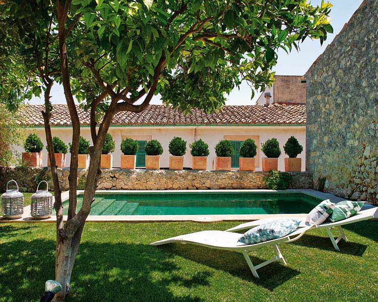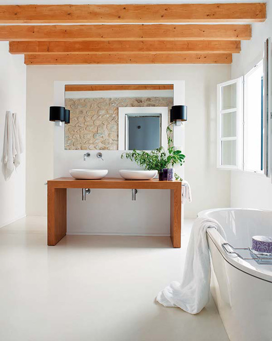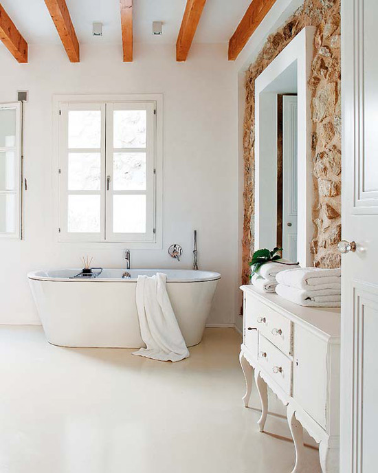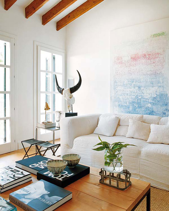 I have just a quick post for you all today as I am trying to enjoy a gorgeous warm and sunny weekend. I spent yesterday at my sister’s cottage and today I’ve got some yard work, spray painting (my shoe shelves need another coat of sealant as many of my shoes ended up with random neon pink marks) and other random chores to get through – anything I can think of to do outdoors. I saw this home on Nuevo Estilo and fell in love. It’s my favourite scenario – and old home that has been renovated and brought to life with mostly contemporary decor. It’s extra special as it’s located on the stunning island of Mallorca, in the Mediterranean Sea. Oh, and it’s available for rent as a vacation home here.