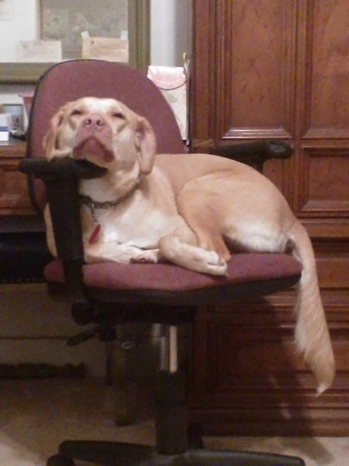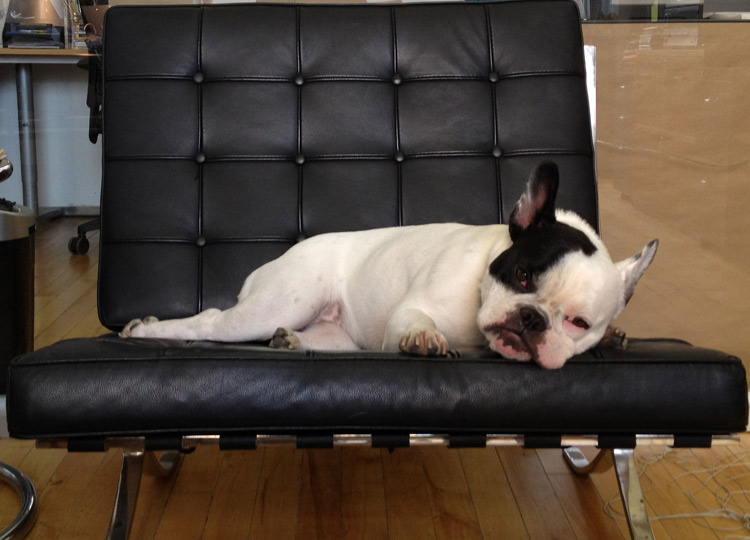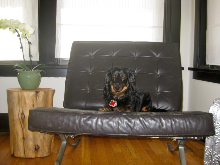 Attached is a pic of Lupita on the Barcelona chair in my office. Lupita comes to work with me every day and while she has her own bed she usually ends up sleeping on this chair.