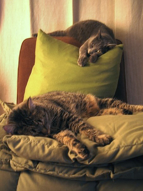 This is Elliot (top) and Emma (bottom). Elliot has a habit of draping his body in odd places around the house and Emma is usually close-by looking like the softest rag doll ever.