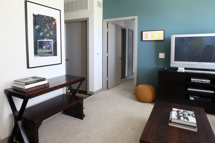 I have another reader’s home for you today. Luis just completed his living and dining room and wanted to share it with our readers. Here’s a quick intro: I wanted to give the space some character that reflected my personality. I love the use of textures in a room. I included wood, fabrics, leather, glass, metal, woven material and even a wooden cube covered in zinc that serves as a great seating piece! All of the photography and art on the wall is unique, done by local artists or friends. All are pieces that I have collected through the years. Even the coffee table books have a story. I collected them during my 5 year stint at the corporate advertising office of a high end specialty retailer. They are autographed by fashion designers Carolina Herrera and Giorgio Armani. I really love the colours Luis used. Perfect guy’s pad with the dark woods. Impressive!
