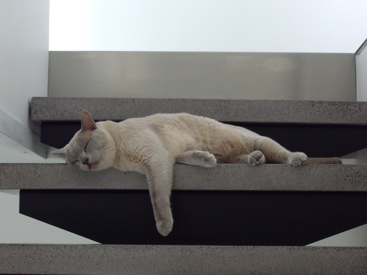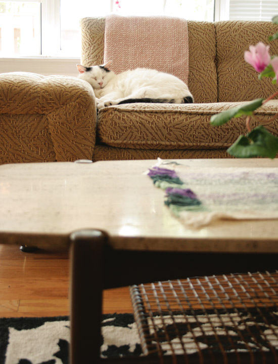 This is Rose taking a catnap my mid-century sectional. I bought the sectional just a month ago and Rose loves to lay up against the arms.