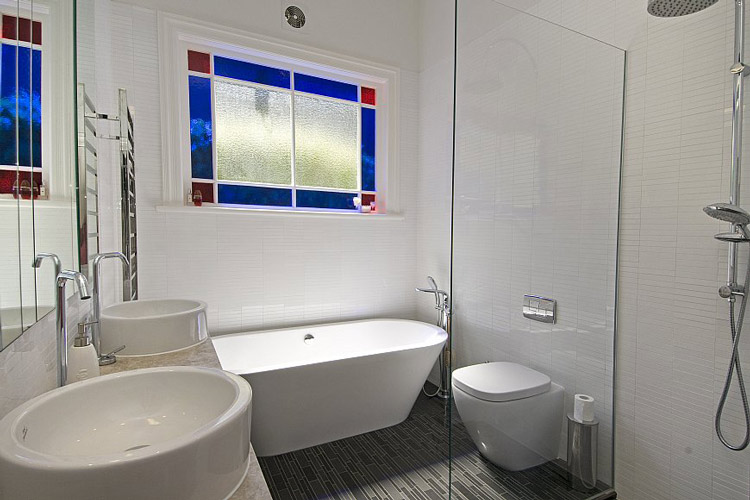 Love everything about this bathroom (including cute little mirrors!).