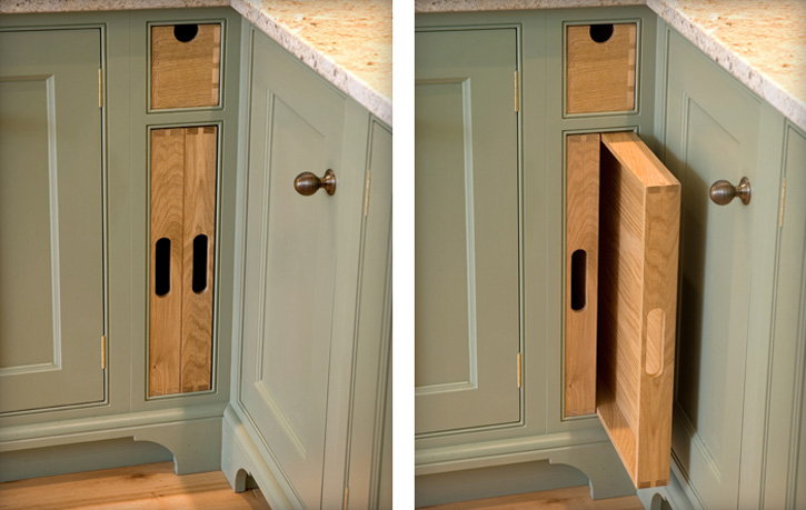 I thought those of you looking for a little kitchen inspiration might enjoy the following kitchens from the folks at Dovetail~Workers in Wood. They are based in Hampshire, UK, and obviously take pride in their work and create dream kitchens for each one of their clients. I love the details they’ve included in some of their kitchens – from a compost drawer to a little niche for trays. Check those out after the jump. First up, some kitchens that caught my eye.