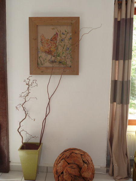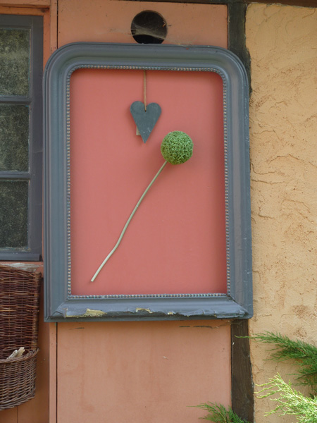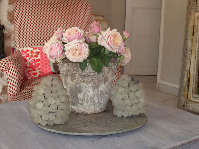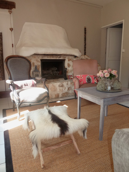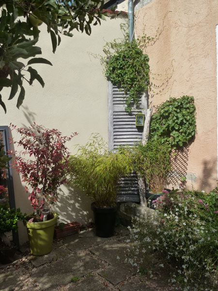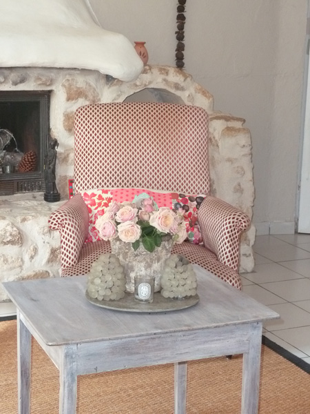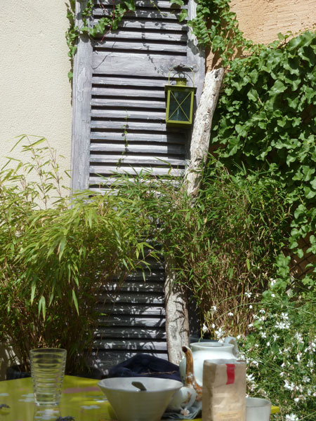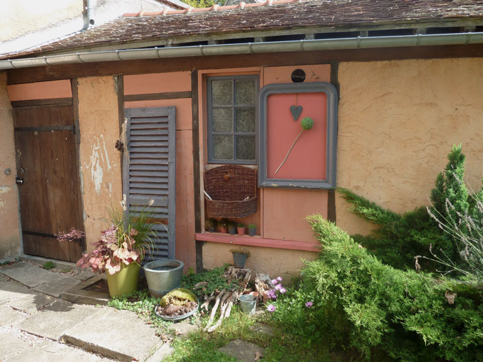 Nathalie, from France, sent along some photos of her home to share with our readers. She rents the home (located in a small village 50km south of Paris) and decorated on a budget, wanting to create a cozy space inside and out. In Nathalie’s words: …je crois que les associations de couleurs, de meubles et d’idées priment sur les moyens. I think it’s charming and I am very envious of her beautiful garden (and her pooch is adorable!).