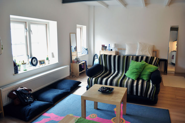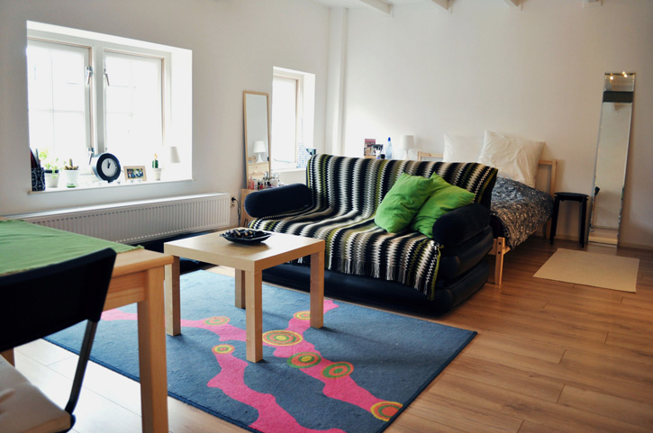 We recently heard from Neslihan, a student who says she’s lucky to have managed to move to a studio this year and decorated it in a very short time. Here’s some info she provided: I’m a Turkish girl studying masters in architecture in Netherlands. I live in Delft and my apartment is in the center of the city. The building is an old bakery warehouse dated circa 1900. It’s renovated last year by MBW Architecten based in the Hague/Netherlands. Wooden and steel beams and steel columns are original. Also window frames are original details from the old construction. The open space of the apartment is around 25 m2. Together with the entrance and bathroom it’s a total of 30 m2. Her apartment is cozy, the openness of the space is fabulous, and I am digging her furniture placement. She’s not a bad photographer either! So without further ado, let me introduce you to Neslihan’s home.