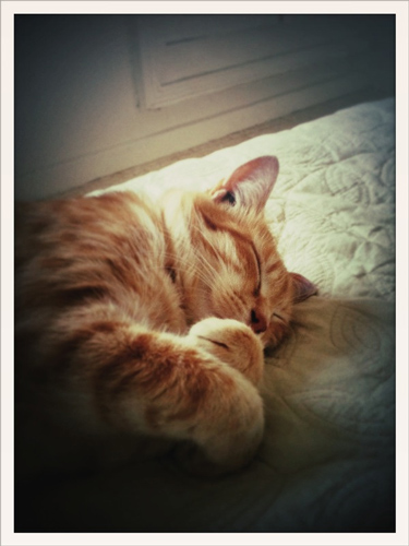 Since I didn’t get a ton of entries this week I thought I’d sneak one in of my own. This is a photo I took this time last year of 3 of my boys (Felix, Cheeks and Edgar) asleep on the living room couch.