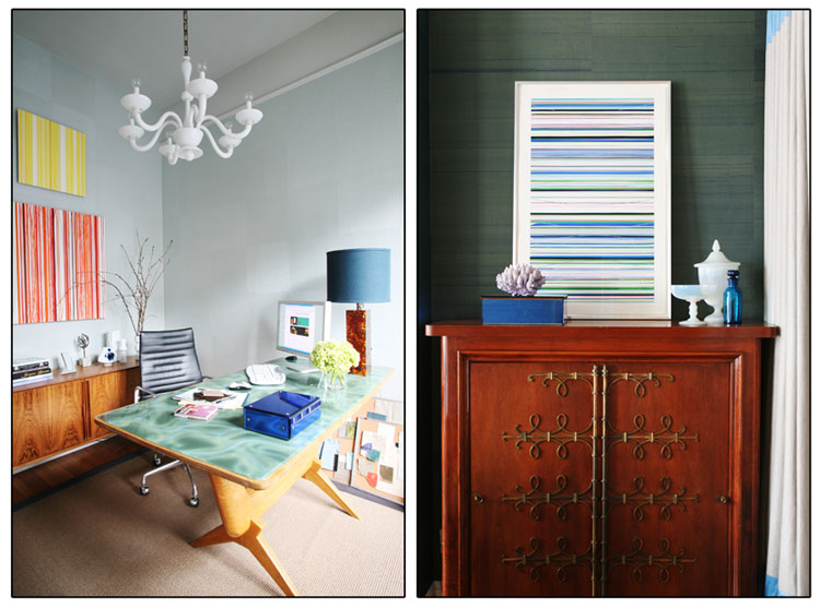 Here’s an email I received the other day from Sandra: “You featured my dining room on your blog before (HERE) & I’ve slowly been working on the rest of my home. I’m sending pics of my den which I’ve been putting together in dribs & drabs w/some really good bargains via consignment shops & ebay. I really enjoyed seeing other readers’ homes & thought to send this in.” And am I ever glad she did. Her den is a cozy mix of many styles but is a wonderful cohesive space with lots of global influences. I love it Sandra!