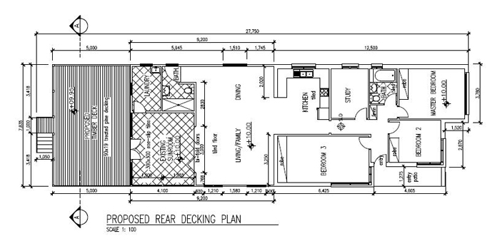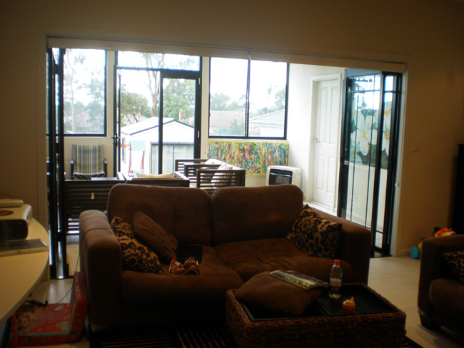 Nadia emailed us just after Christmas looking for some help: “We live in sydney (yay!!!) and our house is elevated about a metre and a half in the back so we will be building an outdoor deck/veranda with a flat roof overhead. So we have council approval and the deck is a simple rectangle 8m w x 5m l, with the right side having some screening. We will be using hardwood and we would have a fence around the entire area with stairs going down (we have 2 kids and plan on adding one more!!). So this is my questions to you ladies. I need help with designing it in terms of fixtures as we plan on building a kitchen later on on the side with the screening but i am so effin confused with the type of fence, lighting, kitchen material, furniture and furnishings to use etc….Our current interior is very modern with plenty of white, black, brown and splashes of colour from paintings and our built-in book shelves. I have attached some photos of our house which consist of the back sunroom. Our home is currently very open plan with the dining living and kitchen all in one section. Then we have bi folds that open up to a sunroom /living space. The proposed decking will obviously continue from the sunroom out. This is how I envisage the deck, open with a kitchen going along one side, since its a kitchen i know we will have to put a screen or back on it and in turn we will leave the rest of the deck open to the view. As for furniture we are thinking of a large outdoor table that would seat up 20 people and some great lighting above the table. We would like some plants etc to make it look ‘green’ and ‘outdoorsy’. So in a way it will be like a dining room with its own kitchen. I would like to keep the sunroon, living room etc as is. However if you have any ideas I am very open to them.”
