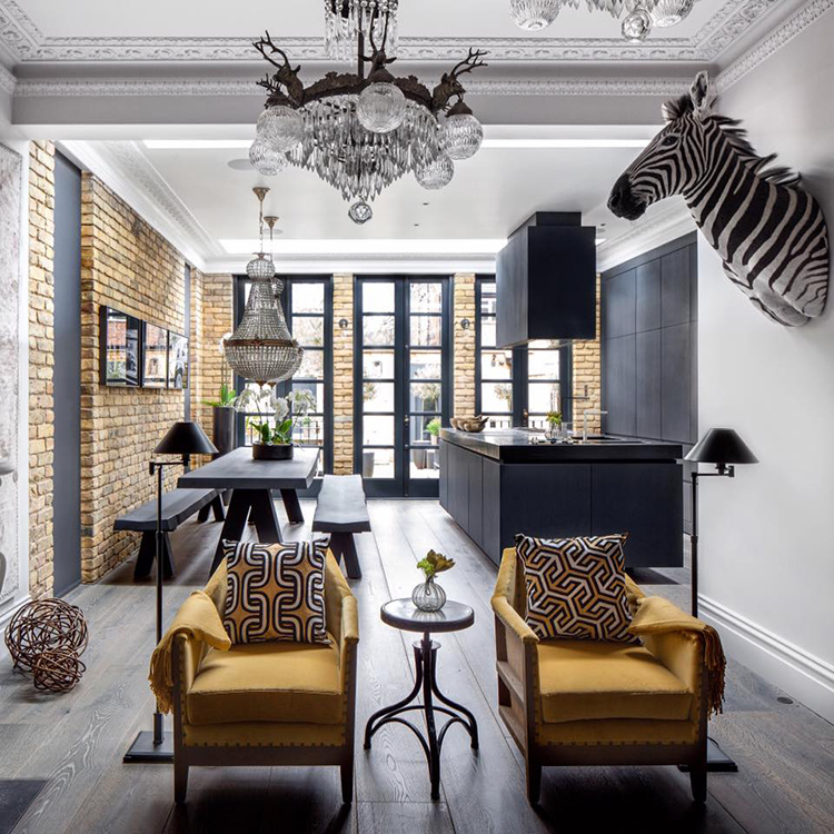 João Botelho, interior and furniture designer at Casa Botelho based in London, is drawn to masculine glamour, symmetry and to-die-for statement lighting. Even if it means bashing your head frequently on the massive light fixture hanging low over the bed. This is João’s glorious four-storey East London townhouse (including a couple of iterations of his living room).