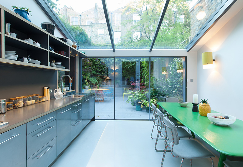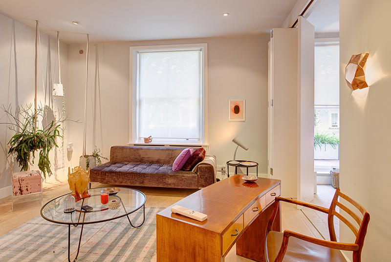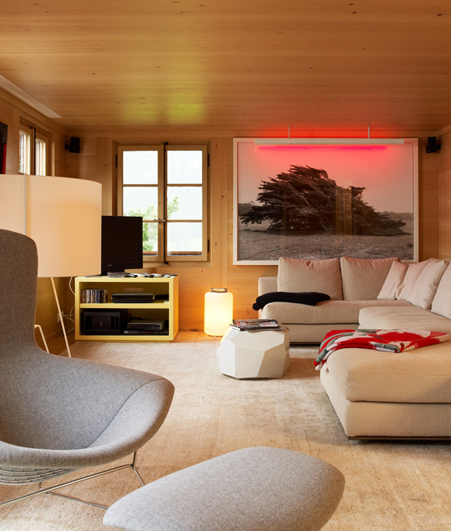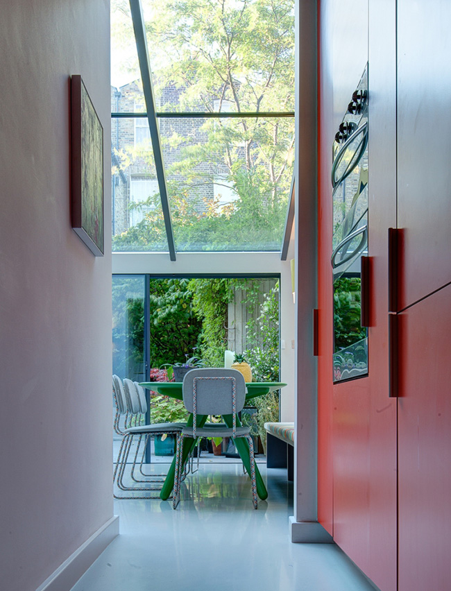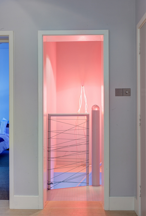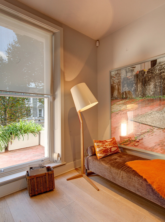 London-based architecture and design firm Camu & Morrison have caught my eye with their contemporary style. What I love is that there is something really unique and fun in each of their spaces. Like the huge piece of art in the photo above, and thanks to the photo below I now want to find a picture light with a pink bulb!