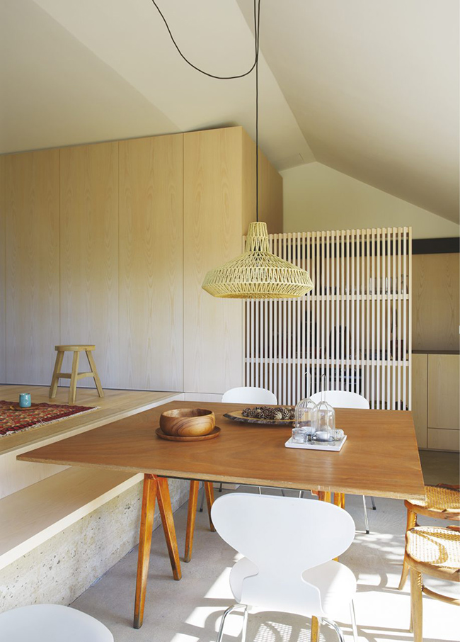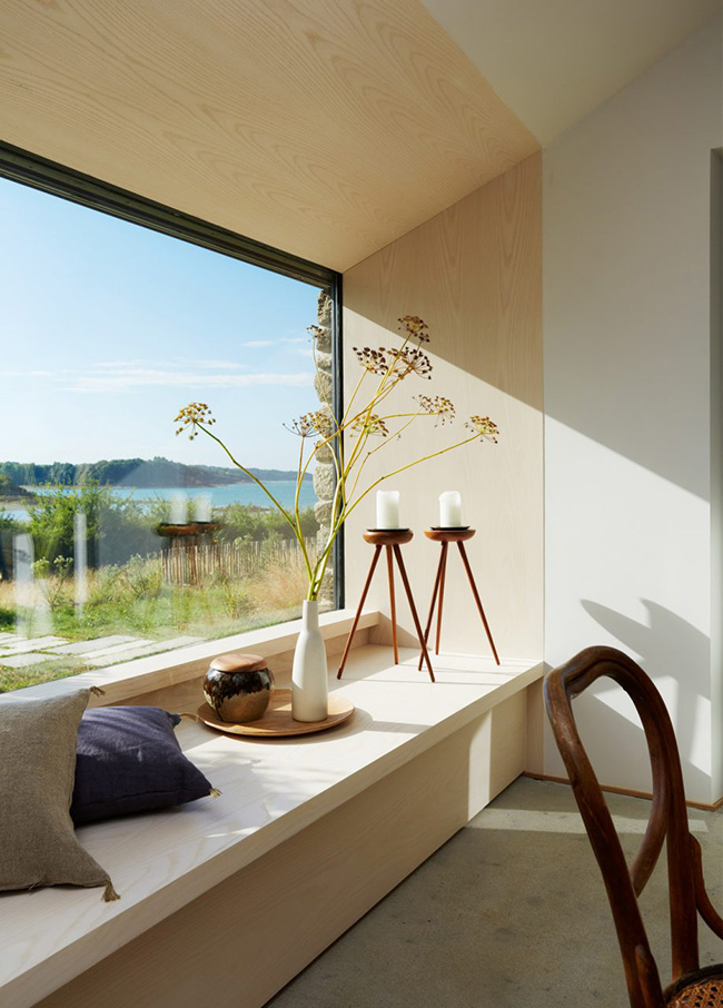 Guillaume Terver and Christophe Delcourt of Paris-based architecture and design firm Le LAD have modernized an old seaside home and made it warm and inviting. Loving the slatted wood details throughout, and the view is incredible.