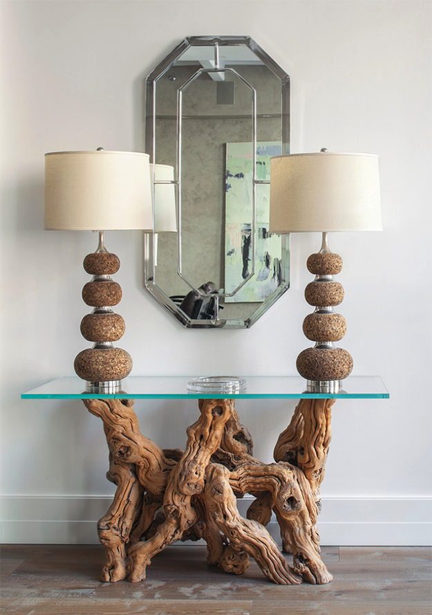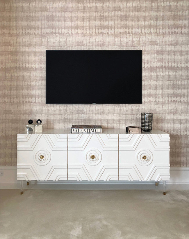 A dose of earthy glamour to finish off the day. One of these days I need to try a grasscloth wallpaper – it adds so much warmth and texture to a space. Beautiful mix of blue and pink in this living and dining rooms in Sherman Oaks, CA by Jessica of Glamour Nest.