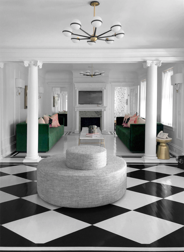 There is a whole lot of modern luxury and drama in these spaces designed by New York interior designer Cara Woodhouse. If you’re into statement light fixtures, bold hits of colour and funky furnishings then Cara’s style is up your alley.