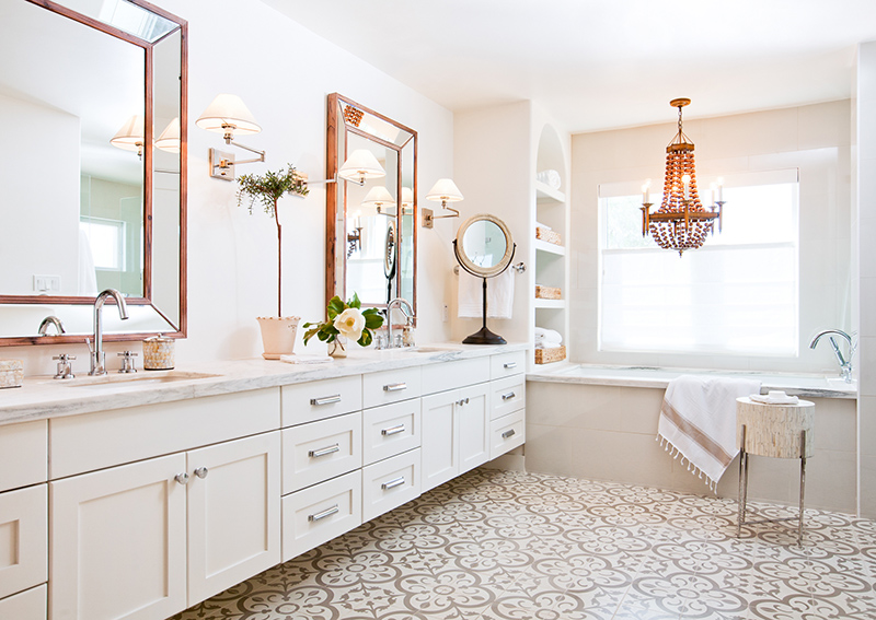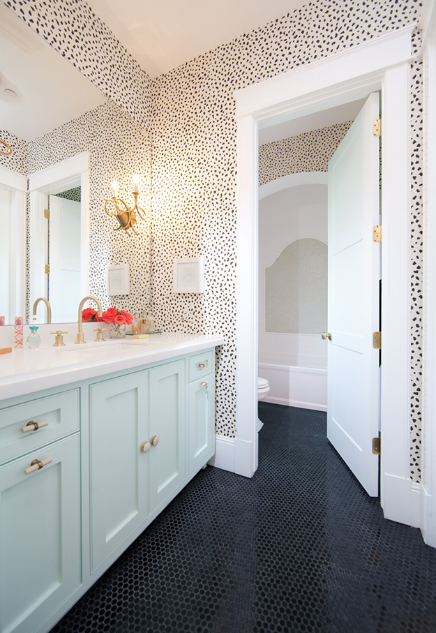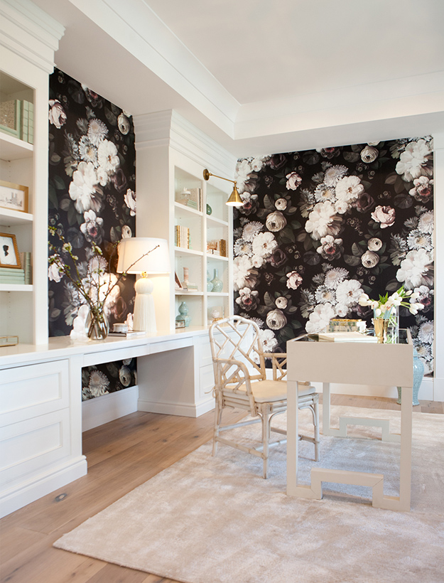 Last month I featured a project by Arizona interior designer Jaimee Rose. I love her style so I thought I’d share a random assortment from other projects she’s worked on. Before I leave you to enjoy this eye candy, I have to point out the fabulous light fixtures in the photo above. Would love one of those in the center of my living room. Also love her because she used my favourite wallpaper by Ellie Cashman.