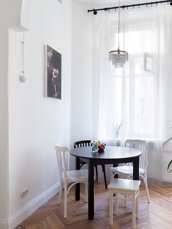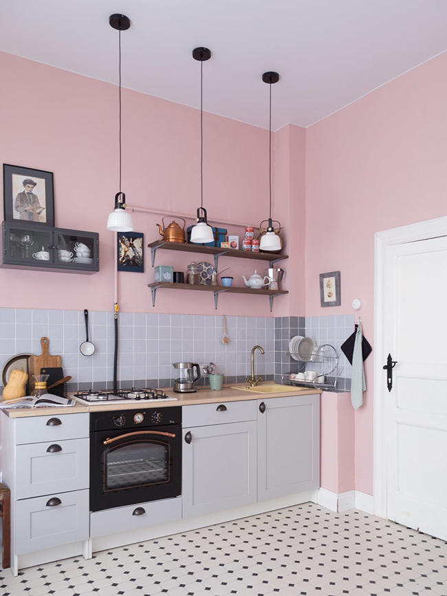 I was poking around The Village the other day hoping to find a little gem of an apartment to share here and sure enough, look what I found! This bachelor apartment is 43.5 m2, is owned by a florist and and a photographer, and is really quite charming. I’m featuring it because I fell in love with the simple kitchen and dining area. A beautiful combination of pink, black, green, and white with a touch of crystal sparkle really has me falling in love with this place. I’d love to Airbnb this.