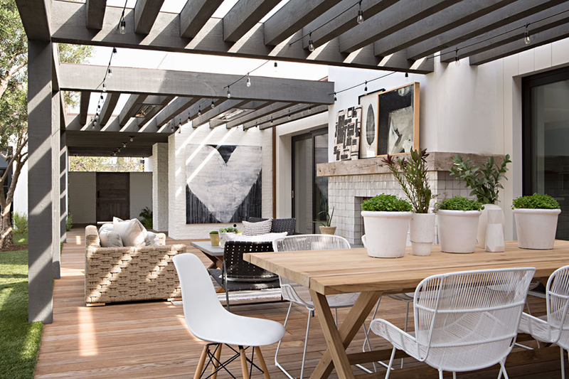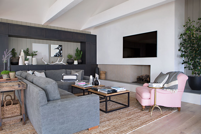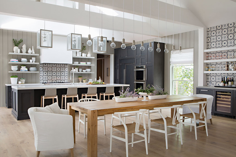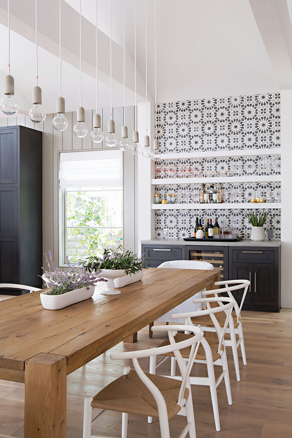 This California home by RailiCA design is a trendy take on modern farmhouse style. You’ve got some modern graphic tile, statement murals, rustic and industrial elements all joined together for a really fun and inviting vibe. HELLO!!!