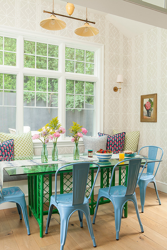 There is a little bit of country and a whole pile of colour in this farmhouse designed by California interior designer Alison Kandler. Since many of our readers seem delighted when we post some colourful homes I thought you might enjoy this one. A LOT. No shortage of colour here! Soooo many wallpapers too. A pattern bonanza! (Photos: John Ellis for Country Living)