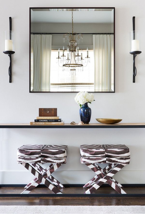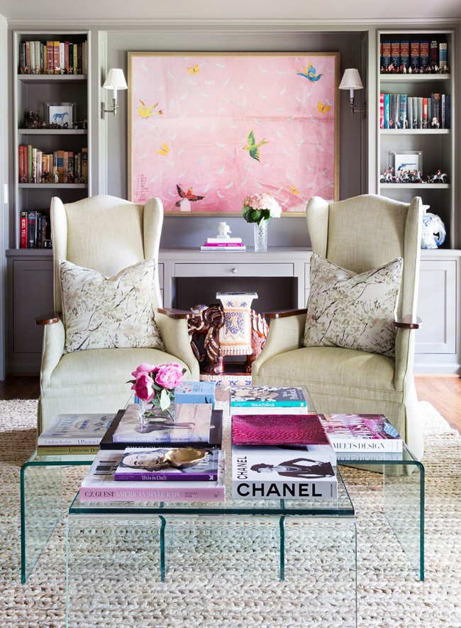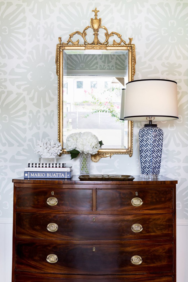 Perfect doses of colour and pattern, beautiful wallpapers, contemporary mixed with antiques, subtle blingy notes….loving all of these spaces by Houston-based interior designer Jennifer Barron.