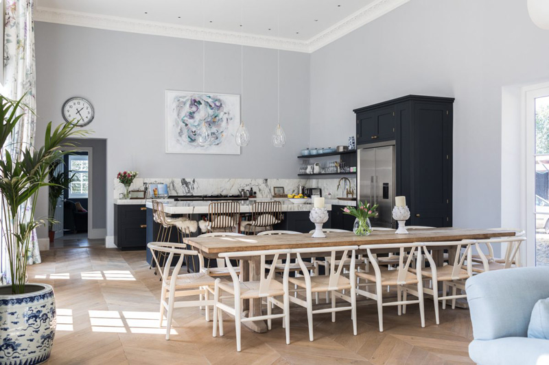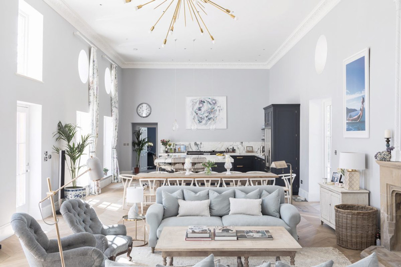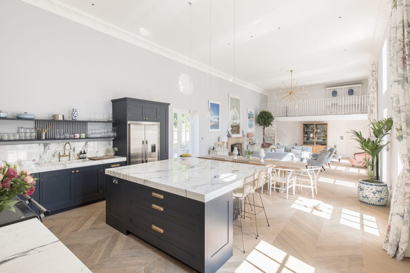 I am experiencing some serious heart palpitations over this renovated Victorian carriage house, especially the absolutely gorgeous kitchen. This property was converted into a home in the 1950s but had fallen into disrepair until the new owners purchased it in February 2016 and began a complete renovation, and the result is all kinds of awesome. The middle section of the home houses the open concept kitchen/dining room/living room (16 metres in long, 6 wide, and 4 high). In the remaining parts of the house are two more sitting rooms, six bedrooms, a large utility room and a huge, modern office space that is in the former garage/carriage storage area. O M G this is massive and stunning inside and out. Available as a location home via Shoot Factory, designed by Laura Butler-Madden.