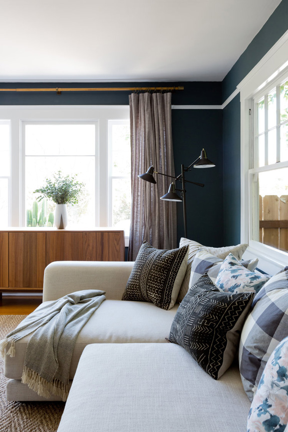 Happy Friday everyone! Hope the weather is going to be beautiful where you are and you’re able to enjoy some sun and warmth (thankfully that would be tomorrow here in Ottawa). I thought this lovely home designed by Venice, California-based Marissa Cramer of MADE CO. would be a great way to end off the work week. Such cozy and inviting spaces that have a bit of a beachy chic vibe and are quite timeless. Love the dark blue walls in the living room.