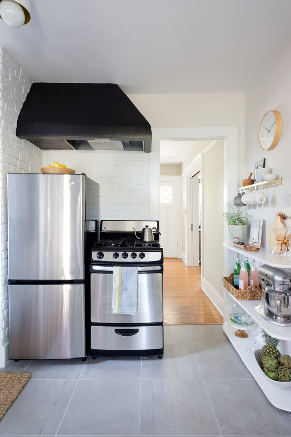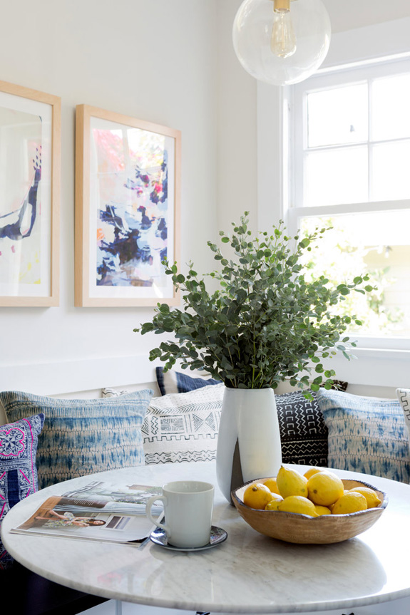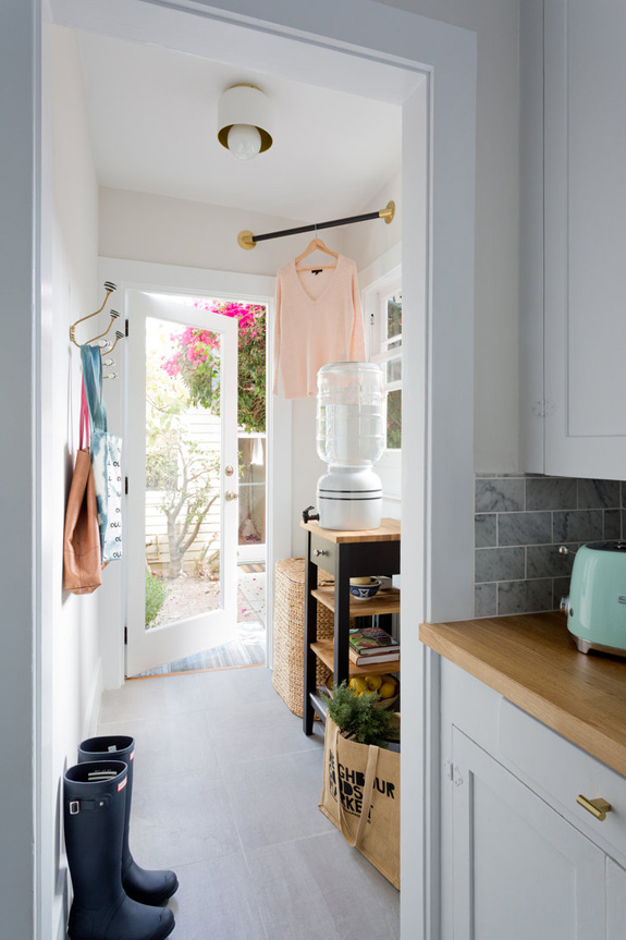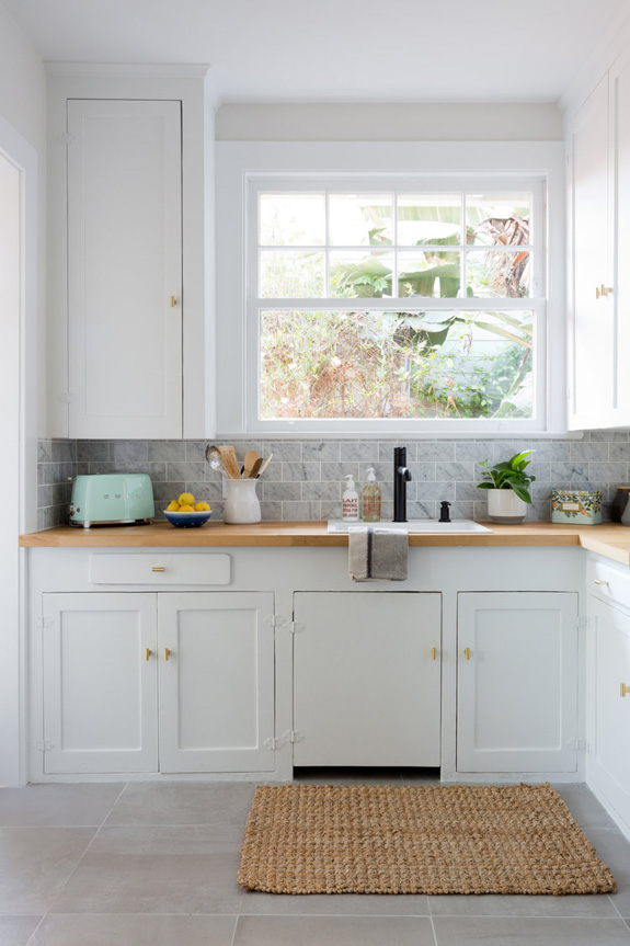 I don’t typically use an adjective like ‘pretty’ to describe a kitchen but it’s the first word that came to mind when I saw this space designed by San Francisco and Portland based Caitlin Wilson. Marble subway tile, mostly white cabinets, brass, pastel accents…I can’t help it. SO PRETTY!