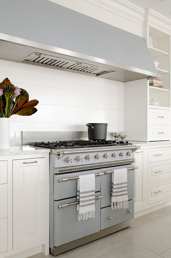 Threshold Interiors took a beautiful Nantucket, MA beach house and turned it into an elegant retreat in shades of white and grey, all the while keeping it comfortable and family-friendly. The kitchen is an absolute dream – love the stove!