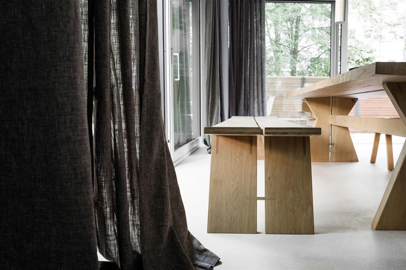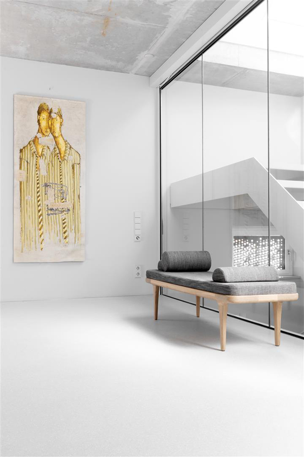 interior design + design of bed, a chaise longue, a table, a bench and hangers = Loft Kolasinski