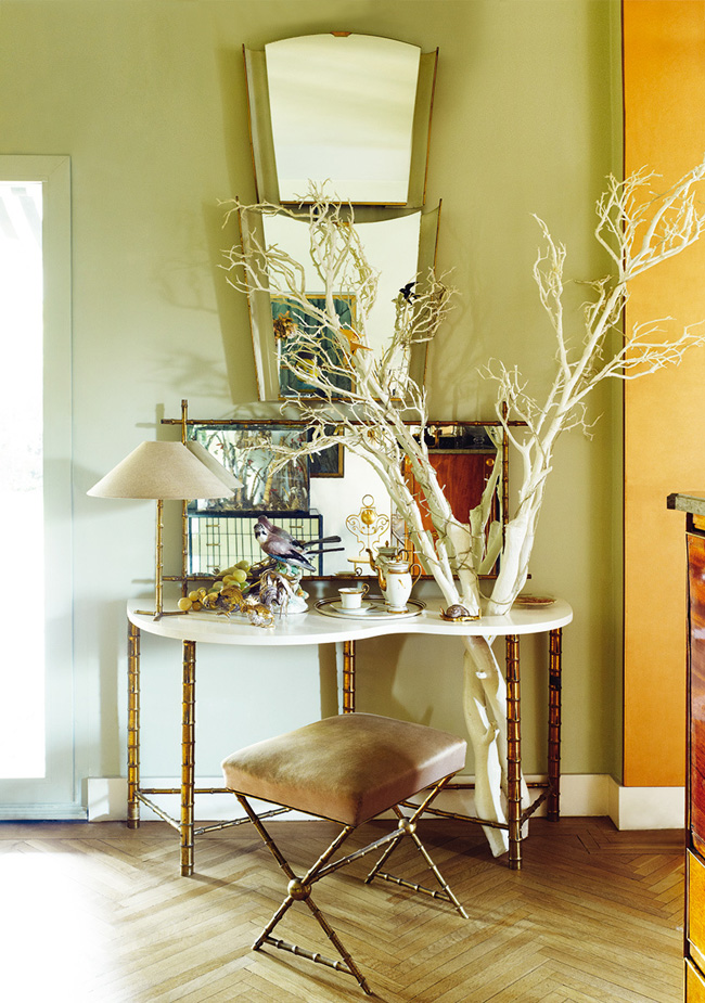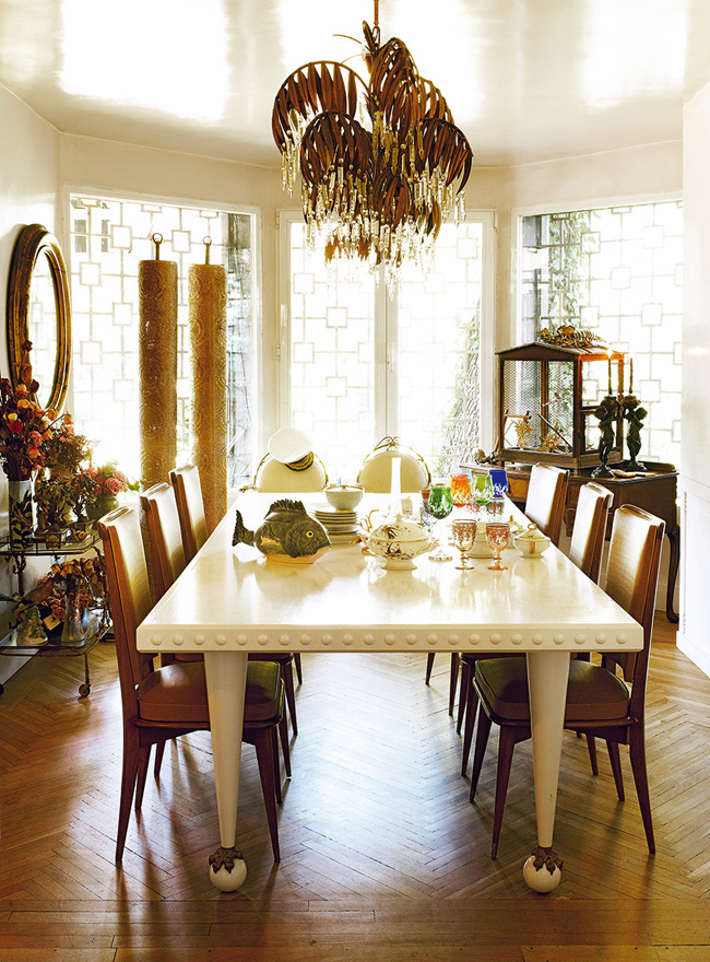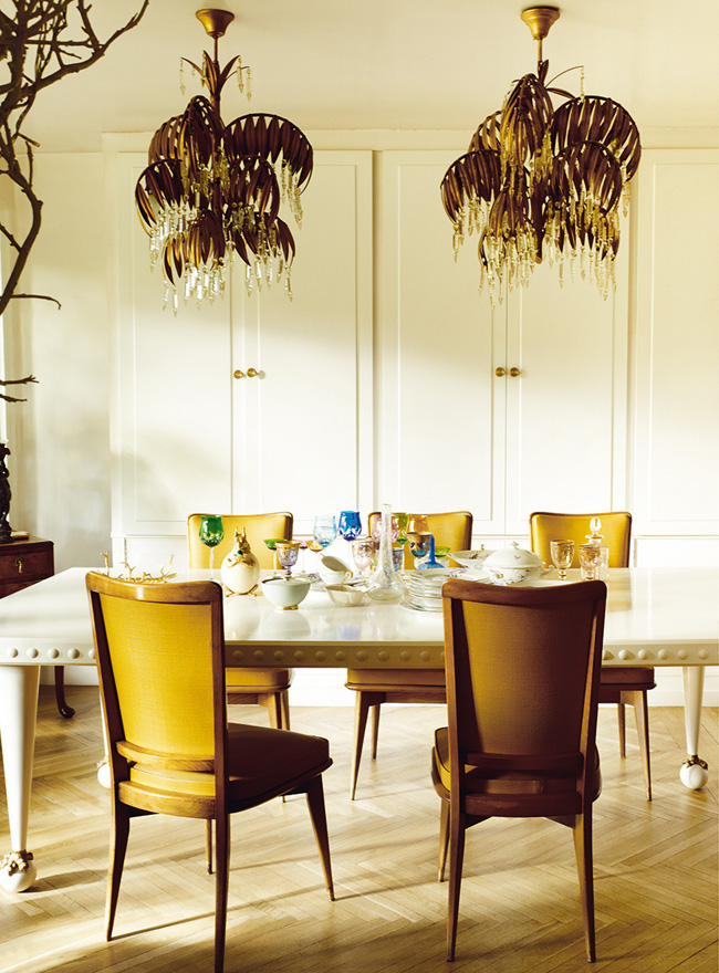 I am unequivocally, unquestionably, undeniably in love with this home. An absolute dream in shades of gold and black, it is located in Madrid and owned by model Laura Ponte. It was featured in Architectural Digest Spain back in 2009 and is apparently now for sale. If I had the zillion dollars she’s asking for it, I would throw in another zillion and demand she leave all the furnishings…or at the very least those chandeliers in the dining room. SWOON!!!
