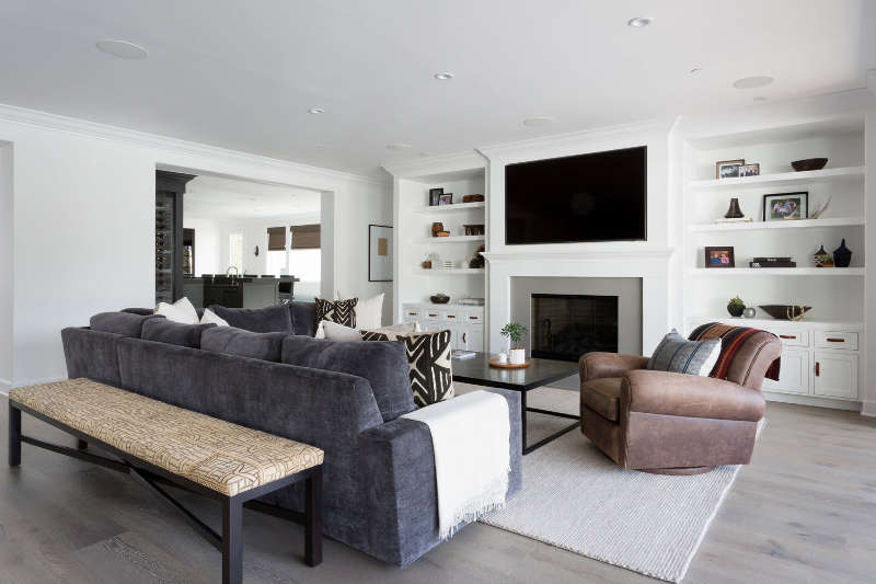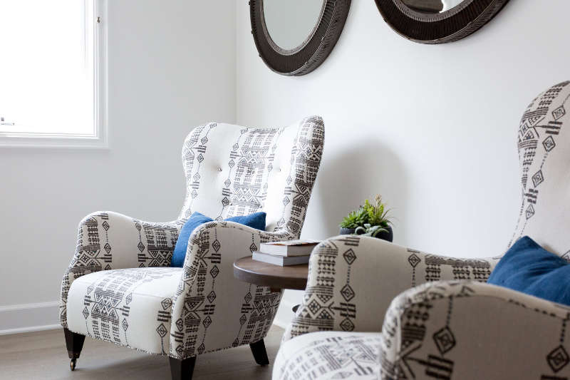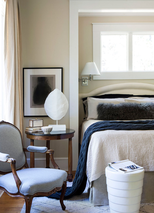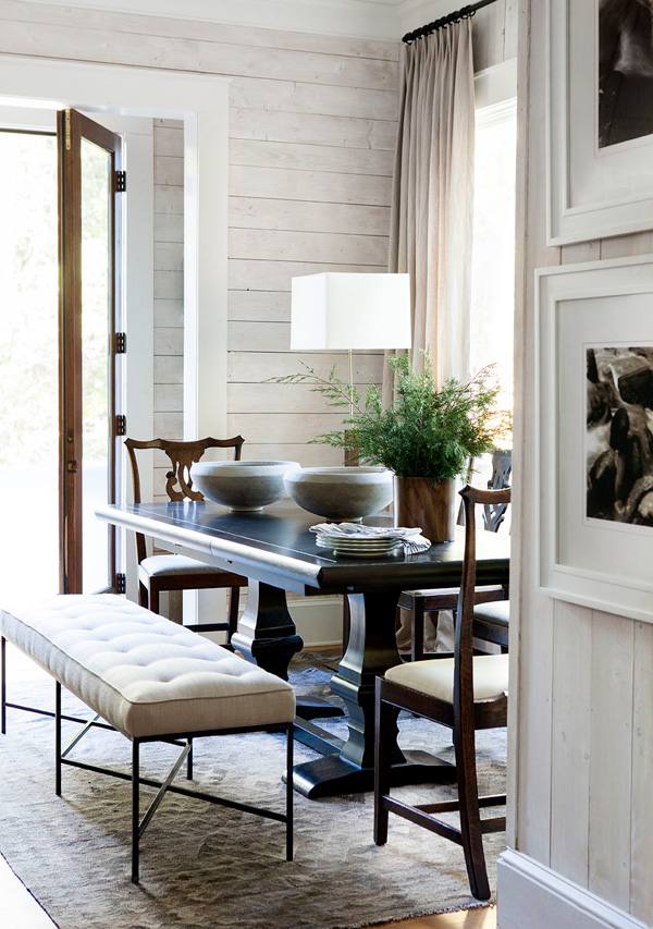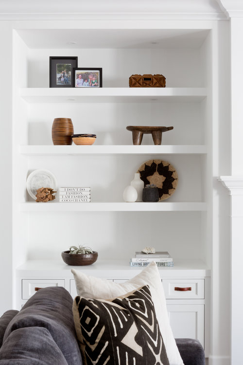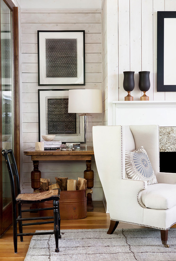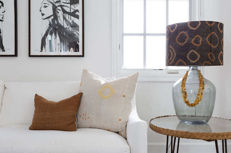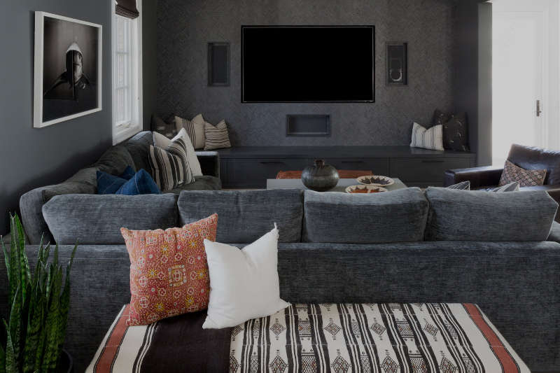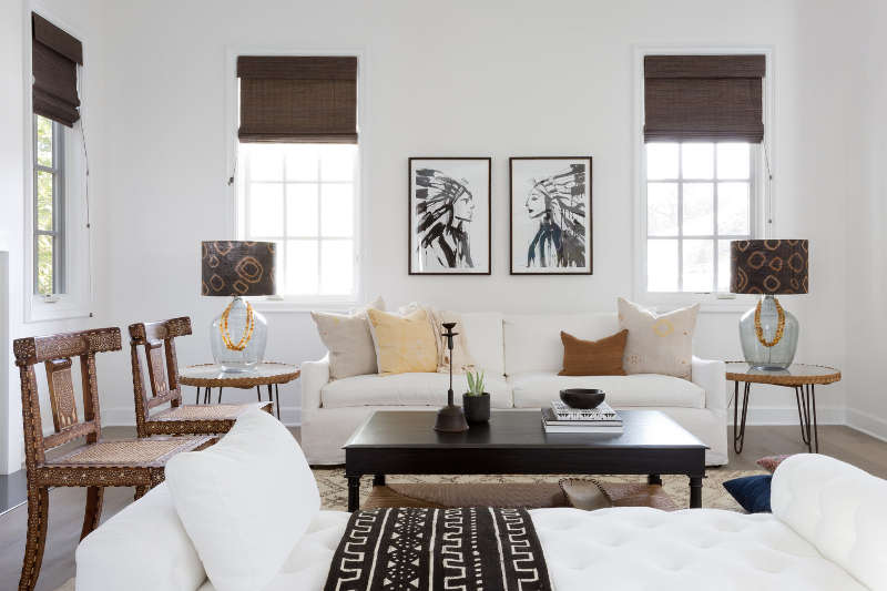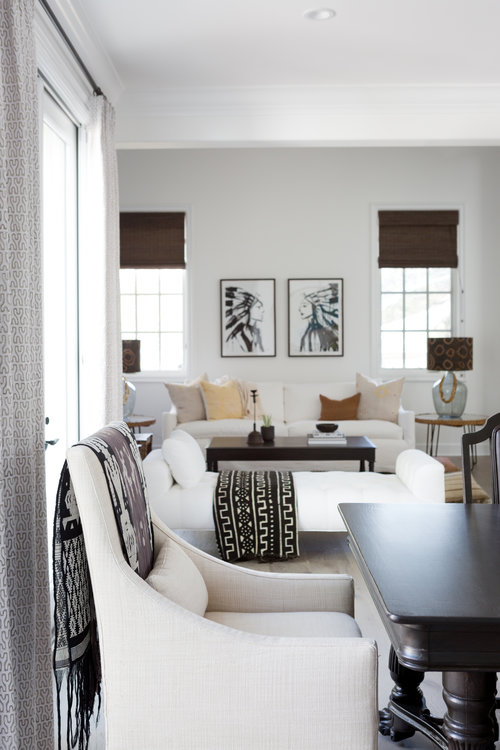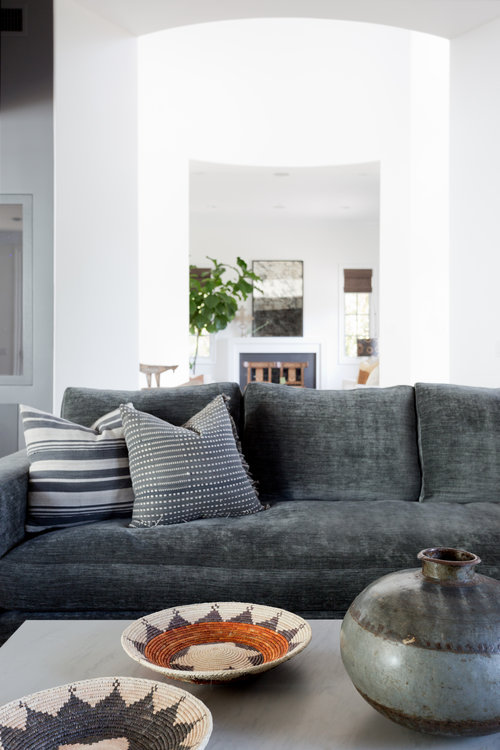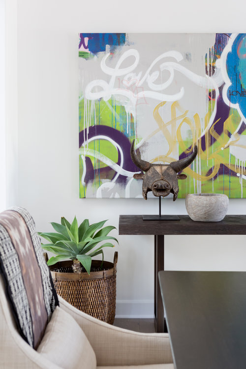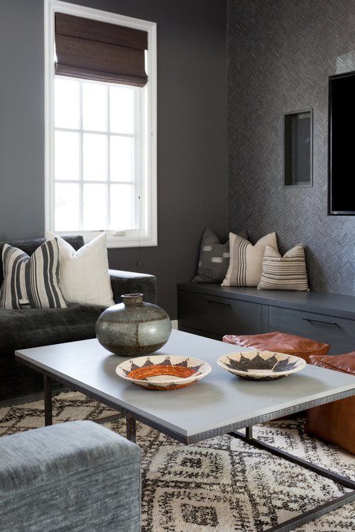 Texture and pattern provide beautiful accents in this contemporary home by Kirsten Marie Interior Design. A limited palette of white and charcoal is layered with global textiles and treasures bringing character and flair. A subtle and stylish combination.