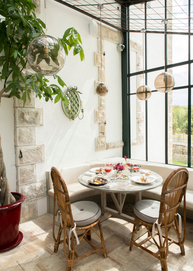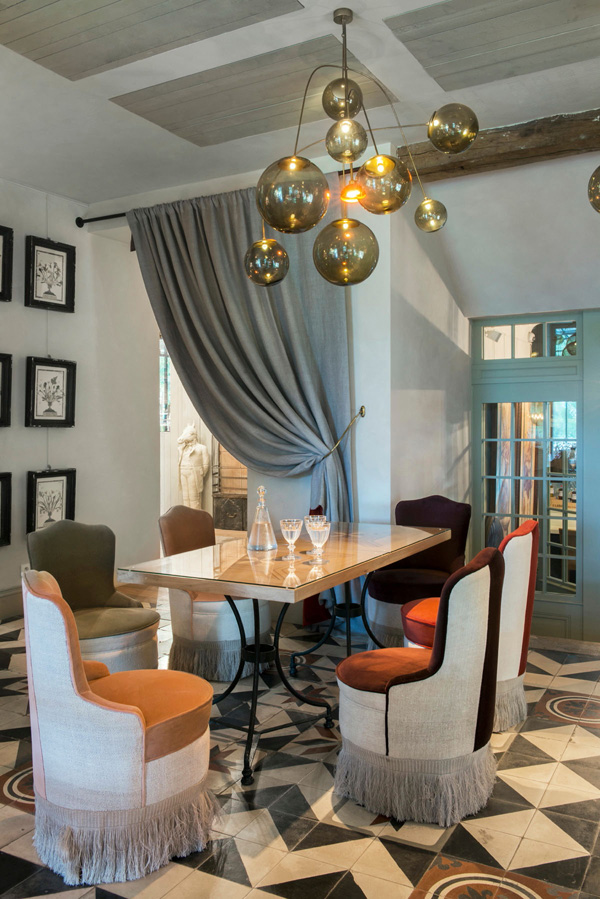 Gaztelur is a restaurant/flower shop/antique shop/banquet hall and one of the most breathtaking venues I have ever seen. Designed by Marta de la Rica, it is an eclectic blend of vintage pieces from just about every era making each space refreshingly unique. I am in awe of the original architectural details that lend such a stunning backdrop to the furnishings and those incredible chandeliers.