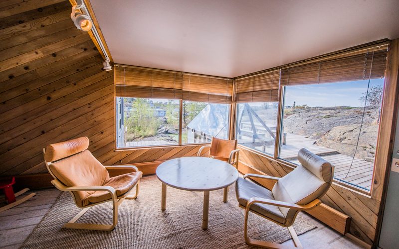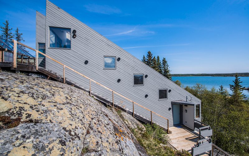 Yellowknife, Northwest Territories has a special place in my family’s heart. Many years ago when my twin sister and I were starting university here in Ottawa, the rest of the family moved to Yellowknife for a few years. Yellowknife is WAY up north and is quite a unique city. It mostly consists of rock and lakes not much else. The house my folks bought was on one of the few streets where the yards had grass (it was considered a luxury given the freezing climate and terrible quality of earth) and the trees were not short little evergreens. There are many creative types up there who over the years have built many really cool homes…some on water and some, like in this case, on the side of a rock face. This house in Old Town is one everyone had greatly admired and we had always wondered what it looked like inside. 20 years later we finally know. 🙂