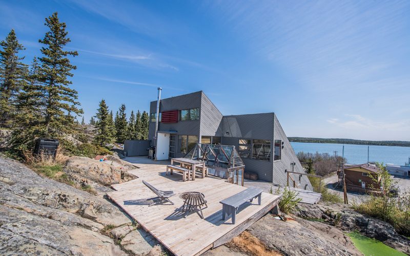 Nestled into the rocky landscape, this now iconic to Yellowknife home was built by a long-time northerner and architect with every space, window and beam in the home thoughtfully designed, crafted and placed with purpose. Watch the sun rise over Great Slave Lake as you water the garden, witness the neighborhood fox hunting for his lunch as you wash dishes in the kitchen, enjoy the soft evening sun during your yoga practice in the loft and treat family and friends to panoramic lake and city views on the huge upper deck backing onto rocky greenspace, perfect for your kids to run around and explore. Originally built in 1978, with the addition built in 1990, the home features cedar siding, fir structural beams and fir and maple custom designed built-in furniture and detailing. Listed at a mere $899,000 😉