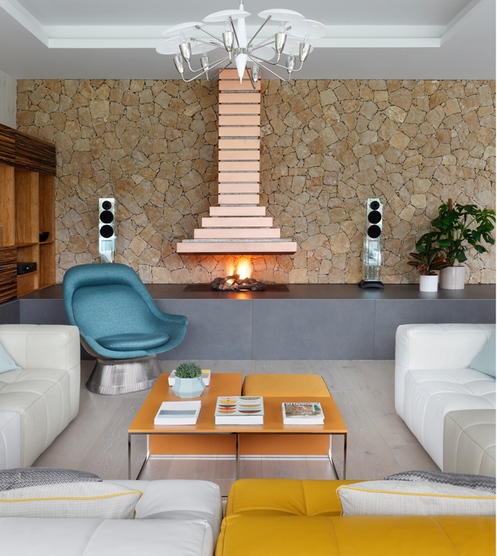 A whole pile of mid-centry modern/retro fabulousness to end off the work week. Surrounded by beautiful English countryside, this vast new-build features floor-to-ceiling windows which highlight the stunning rural location. The sensation of bringing the outside in is further emphasised through the open-plan layout which flows seamlessly from room to room, offering the perfect space for socialising. Teeming with unexpected details at every turn, iconic pieces such as an Eero Saarinen table and Warren Platner chair elevate the space from ordinary to extraordinary. A unique sunken lounge exquisitely framed by a statement pendant and futuristic basement bar with a cinema and music room offer areas for both formal and informal entertaining in this inviting country home. By London-based architectural interior design studio Oliver Burns.