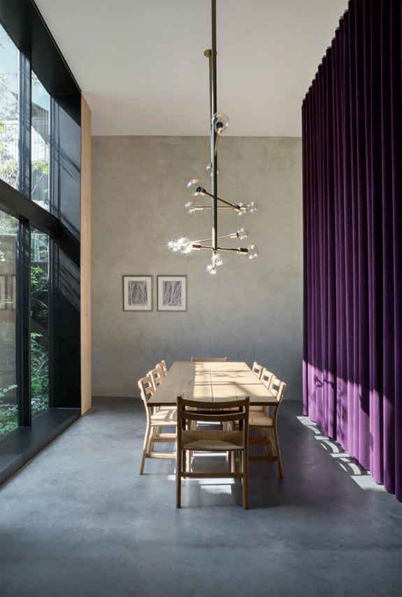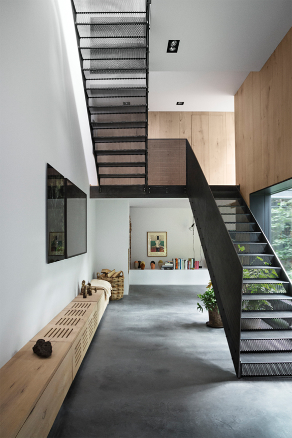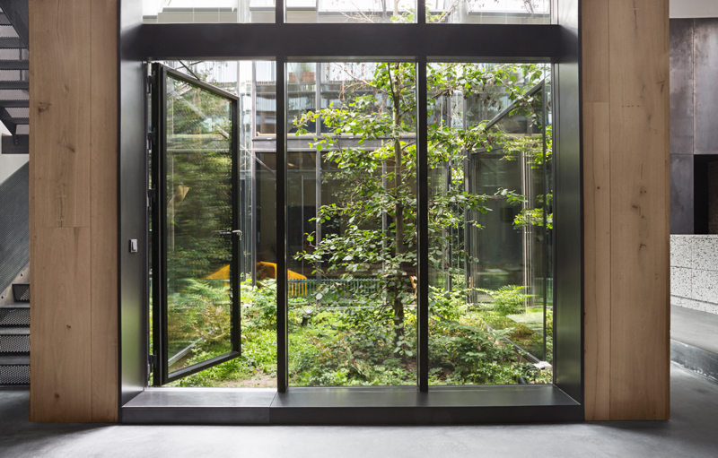 Architecture, interior and design practice Studio David Thulstrup knows how to create beauty from something very raw and industrial, making this home a total urban dream. The renowned photographer Peter Krasilnikoff (who took these photos) commissioned us for his private residence in Copenhagen. Our inspiration evolved from worn-out warehouses and factories with their blackened steel and old bricks; a concept which was sparked by the desire to retain the three raw-brick walls of the old garage on site. The design is focused around a central mirror-clad atrium, which floods all three floors of the residence with natural light. The atrium is lush with specially selected grasses, plants and a feature tree which is visible from all floors – creating a central and bright oasis.