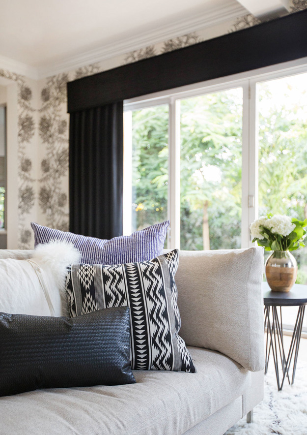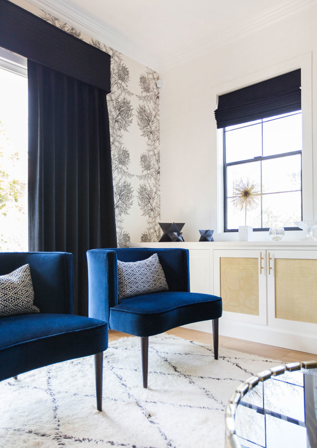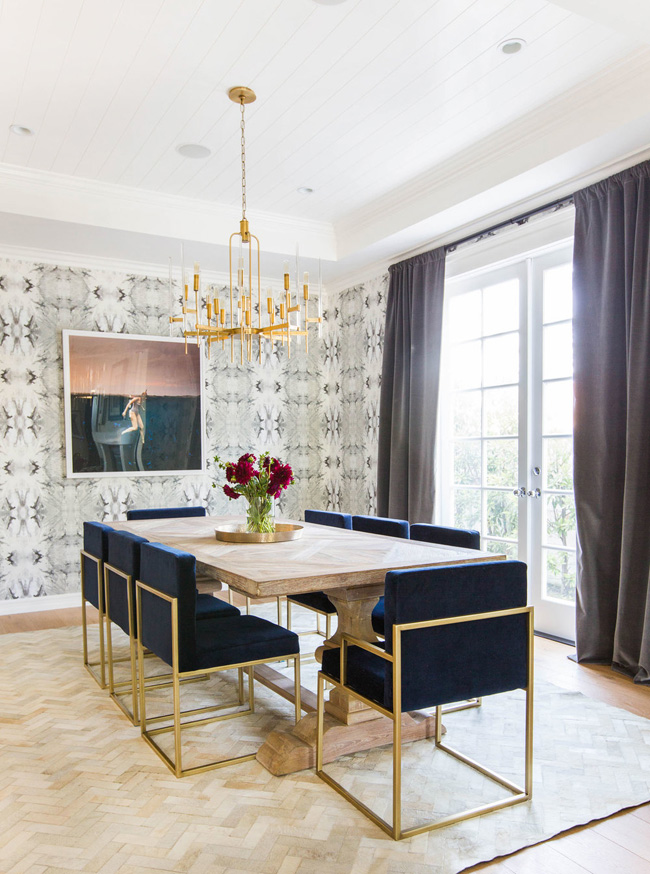 Chic and polished in a colour palette of black, navy blue and brass. This home is absolutely gorgeous, and I think I am now suffering from wallpaper envy. Another stunning project by Venice Beach designer Katherine Carter.