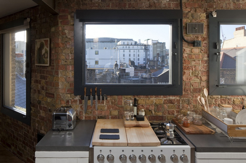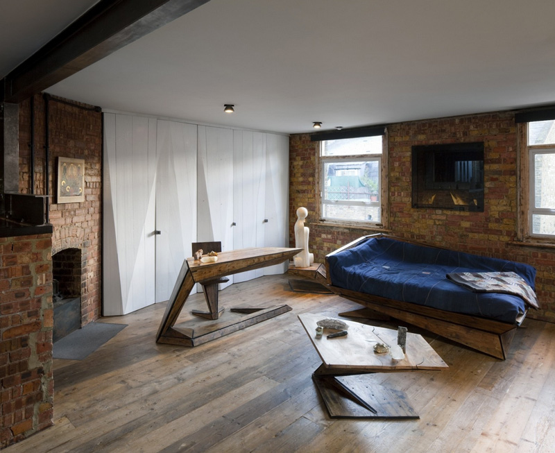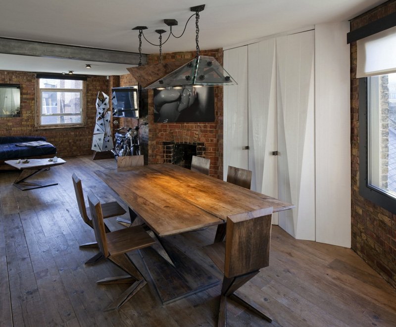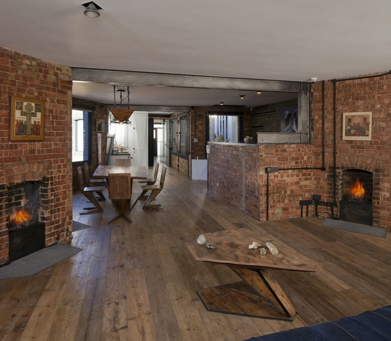 Hard angles, brick walls, beautful worn wood. Lovin’ this industrial apartment by Michaelis Boyd. I would need to add a few plants tho’. And something girly like a really sparkly chandelier.