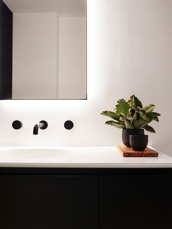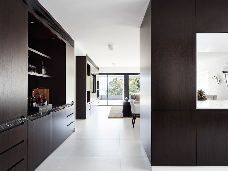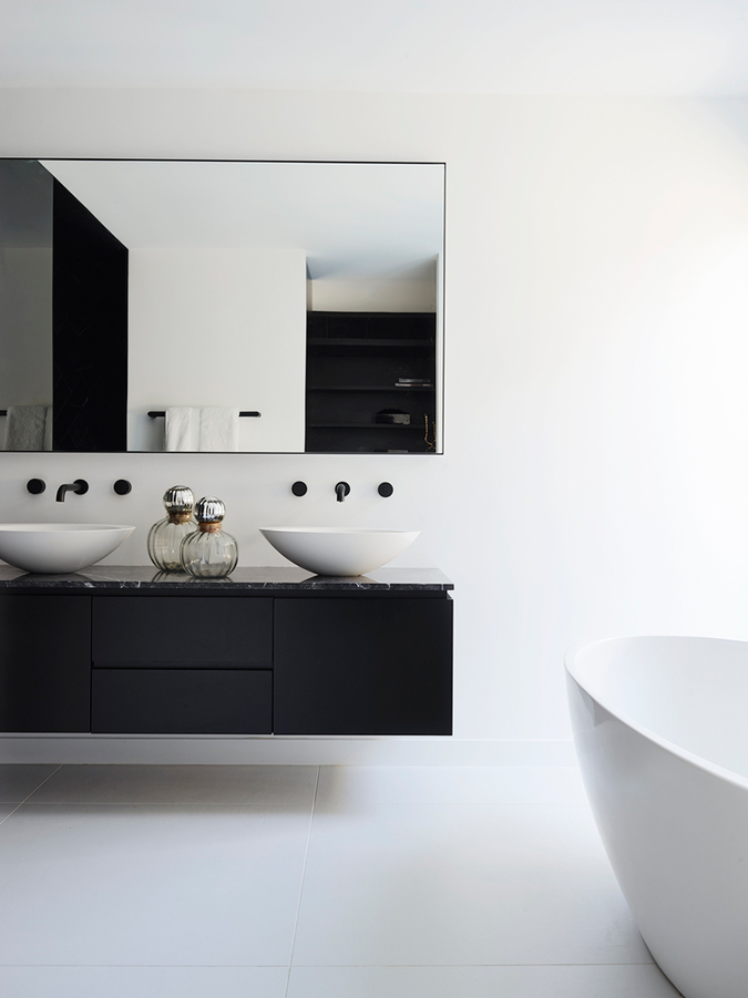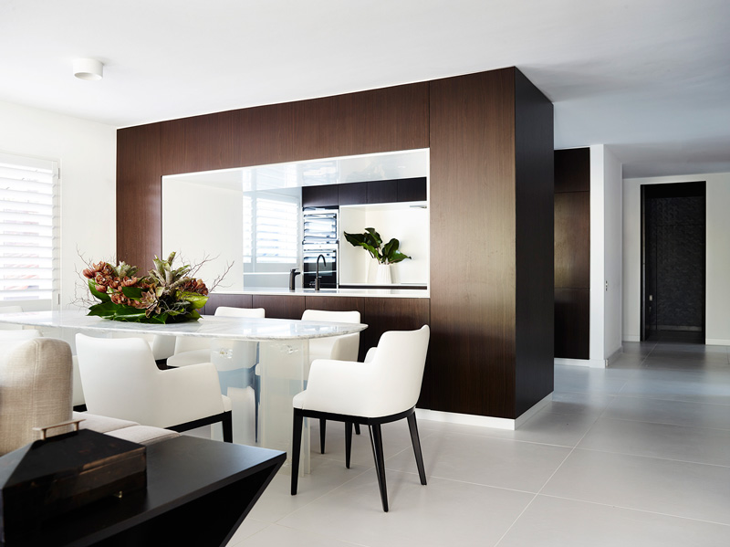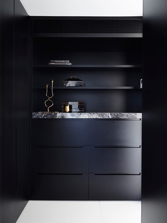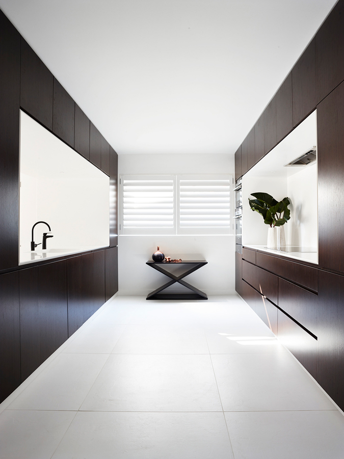 This renovated 3 bedroom apartment in Sydney, Australia is sleek and modern with a black and white colour scheme. This combination makes for a very chic and dramatic pad. The open concept space is punctuated with a kitchen design that I absolutely love – as much as I love a fabulous kitchen, it’s even more fabuolus when it doesn’t really look like a kitchen at first glance (I thought it was a dressing room!). By POCO Designs.