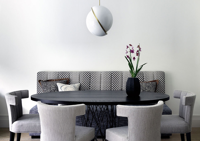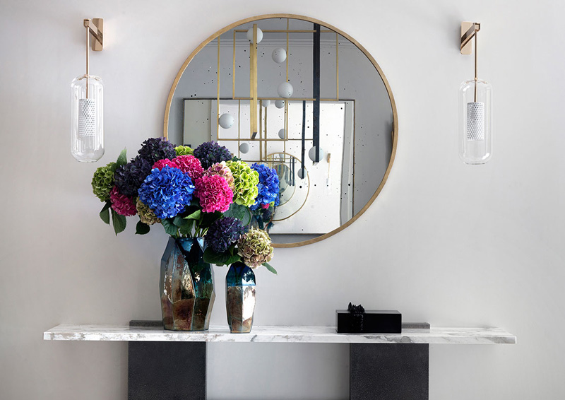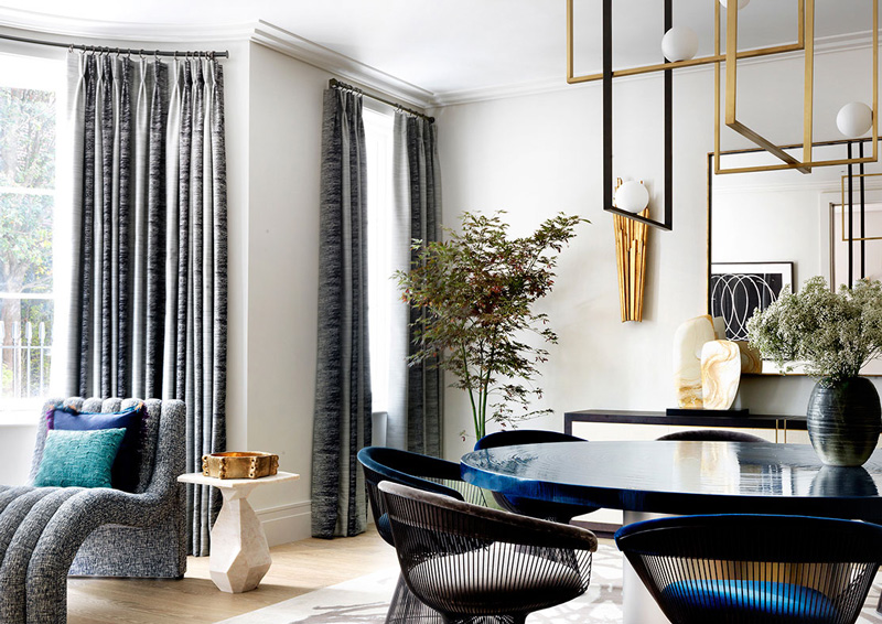 An elegant blend of comfort and glamour. An intricate layering of materials and detailing. Patterns and textures and art that add so much dimension and intrigue. By London & Miami based architect and designer Natalia Miyar.