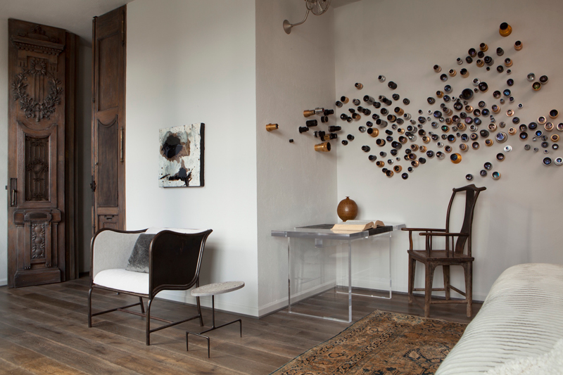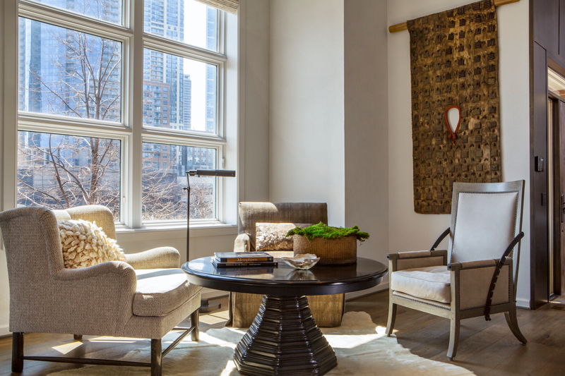 Tactile fabrics merge with earthy neutrals. Ancient blends with modern. Rough co-exists with luxurious. Where every piece is completely unique. A Chicago row house designed by Michael Del Piero.