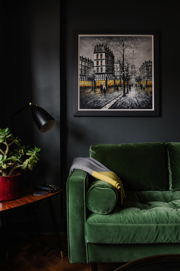 My heart will always be with the dark and dramatic, so I was pleased as punch to discover someone shares my passion for moody, inky shades. Fiona Duke is an interior designer based in Essex, U.K. and I love her eclectic, casual style. I discovered several of these fabulous photos are of her own home so she’s designing and living in awesomeness.