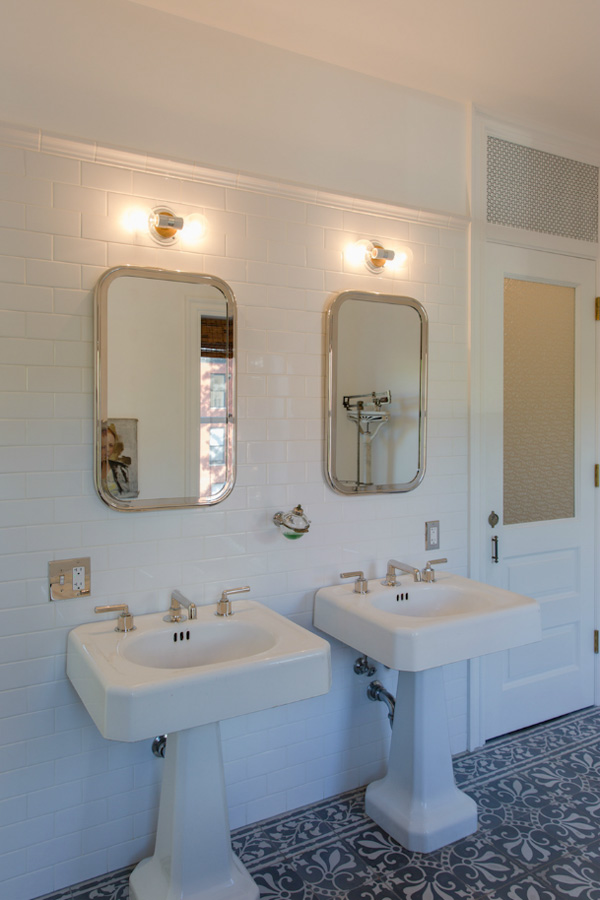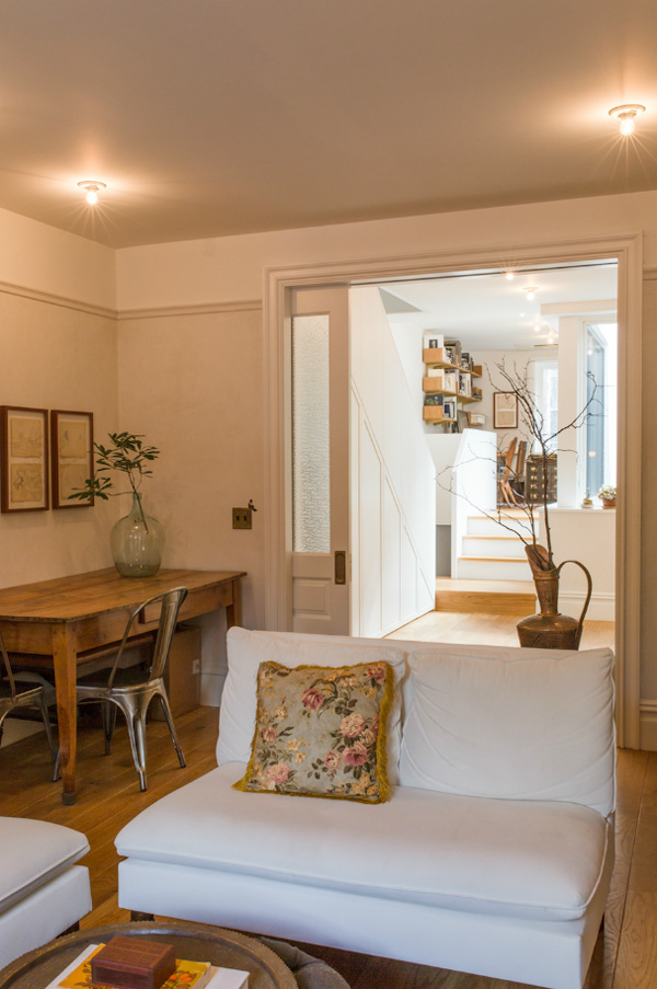 I get excited when I find architects who maintain as many original features as possible when renovating homes. especially when it comes to gorgeous New York townhomes and brownstones. This townhouse on 6th Avenue is pretty simple but the details are so yummy including marble fireplace surround and pocket doors with patterned glass inserts. Via Leone Design Studio, photos by LISEO+CO.